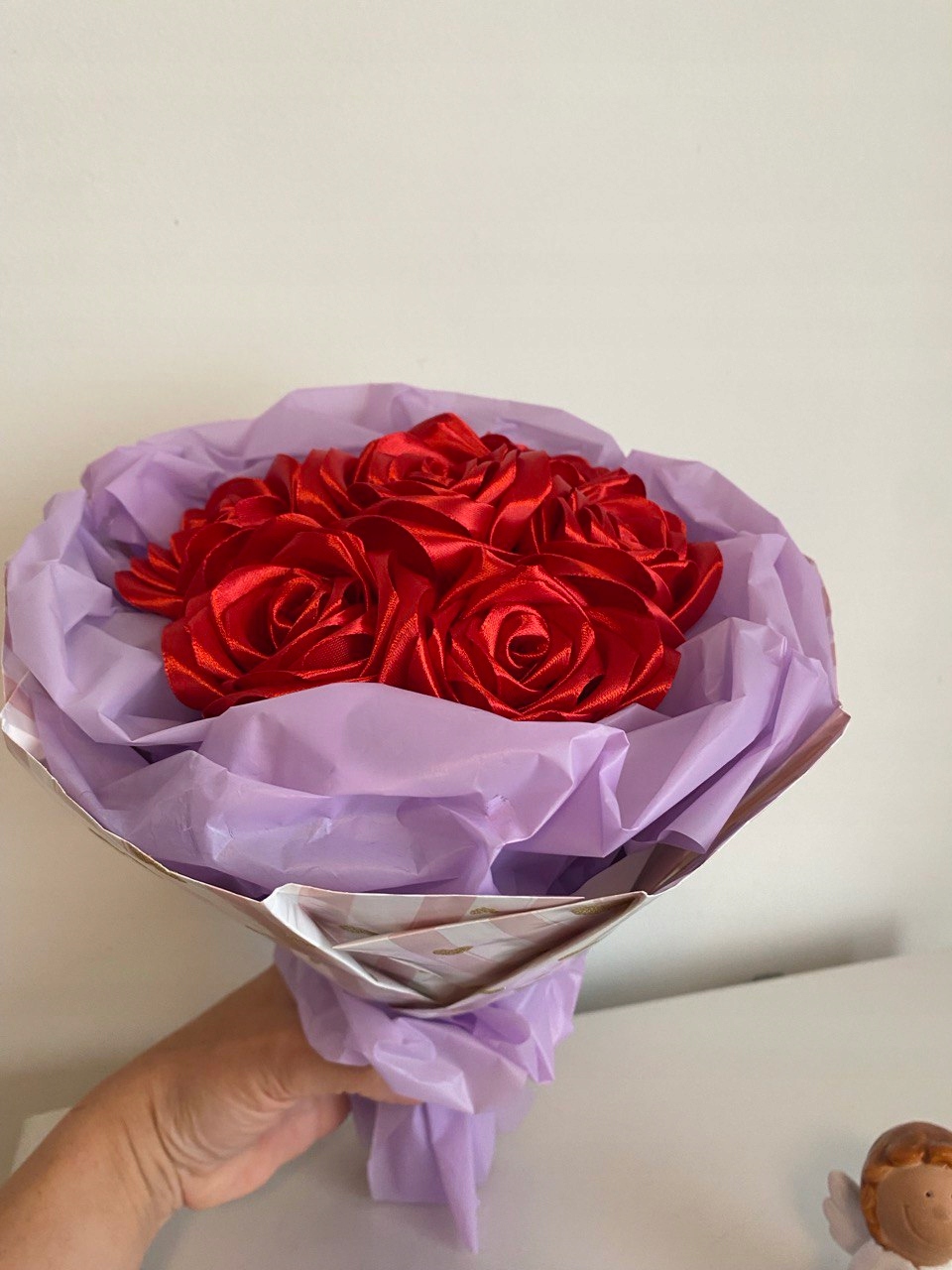 Буккети ручної роботи 7 шт. Букет -трояндові квіти. Від атласної стрічки.