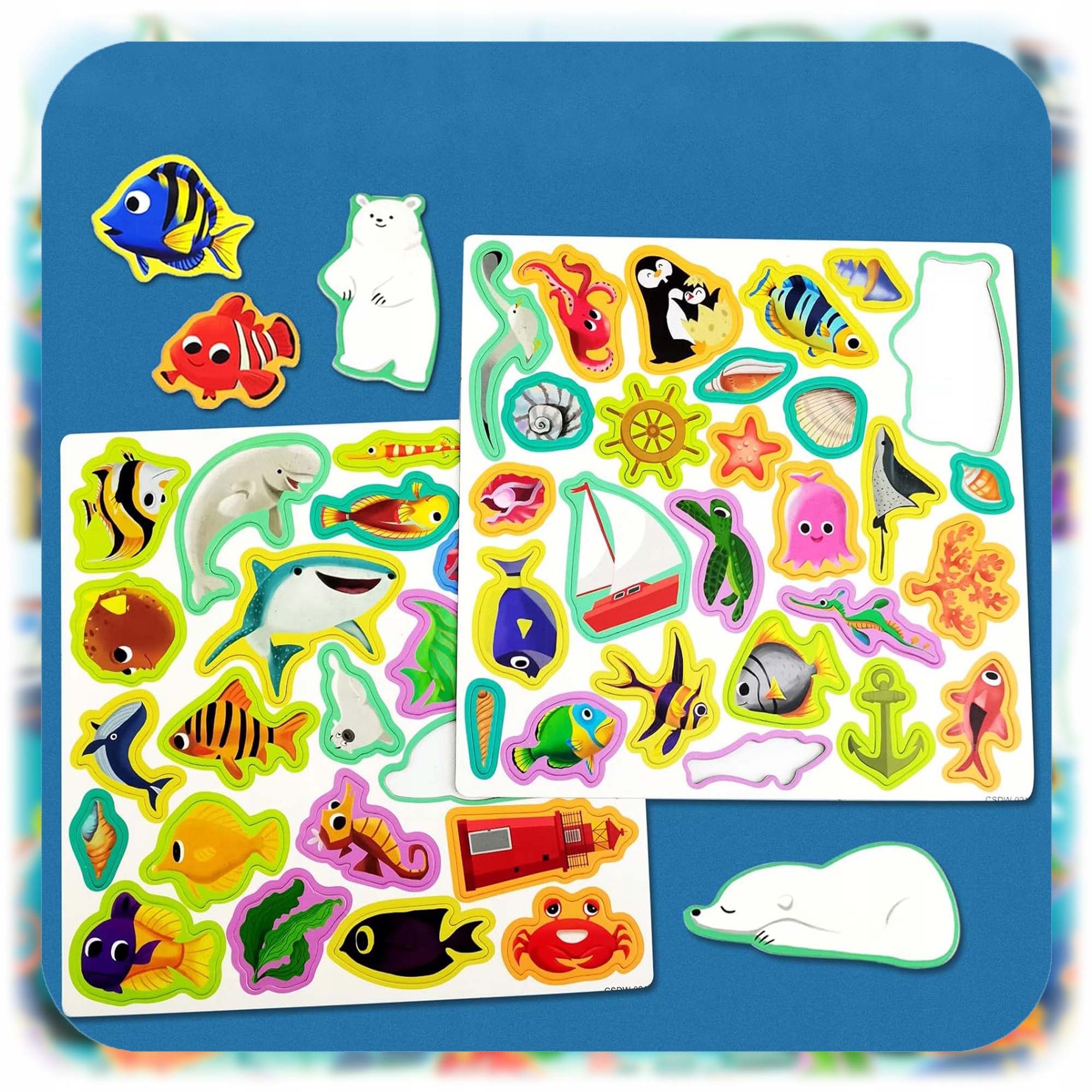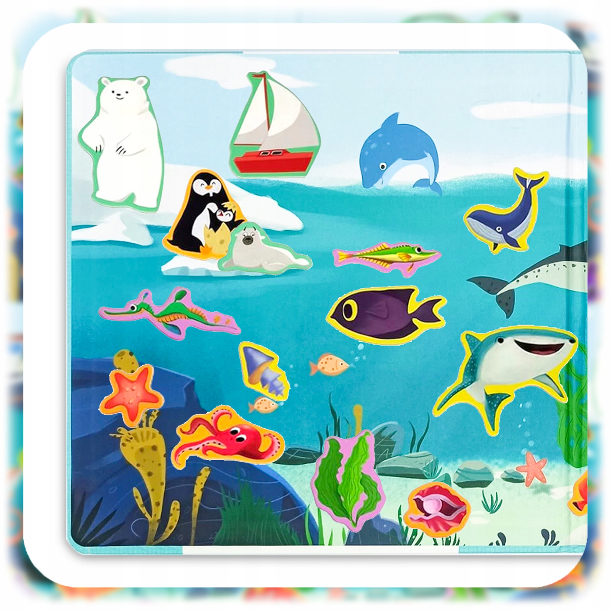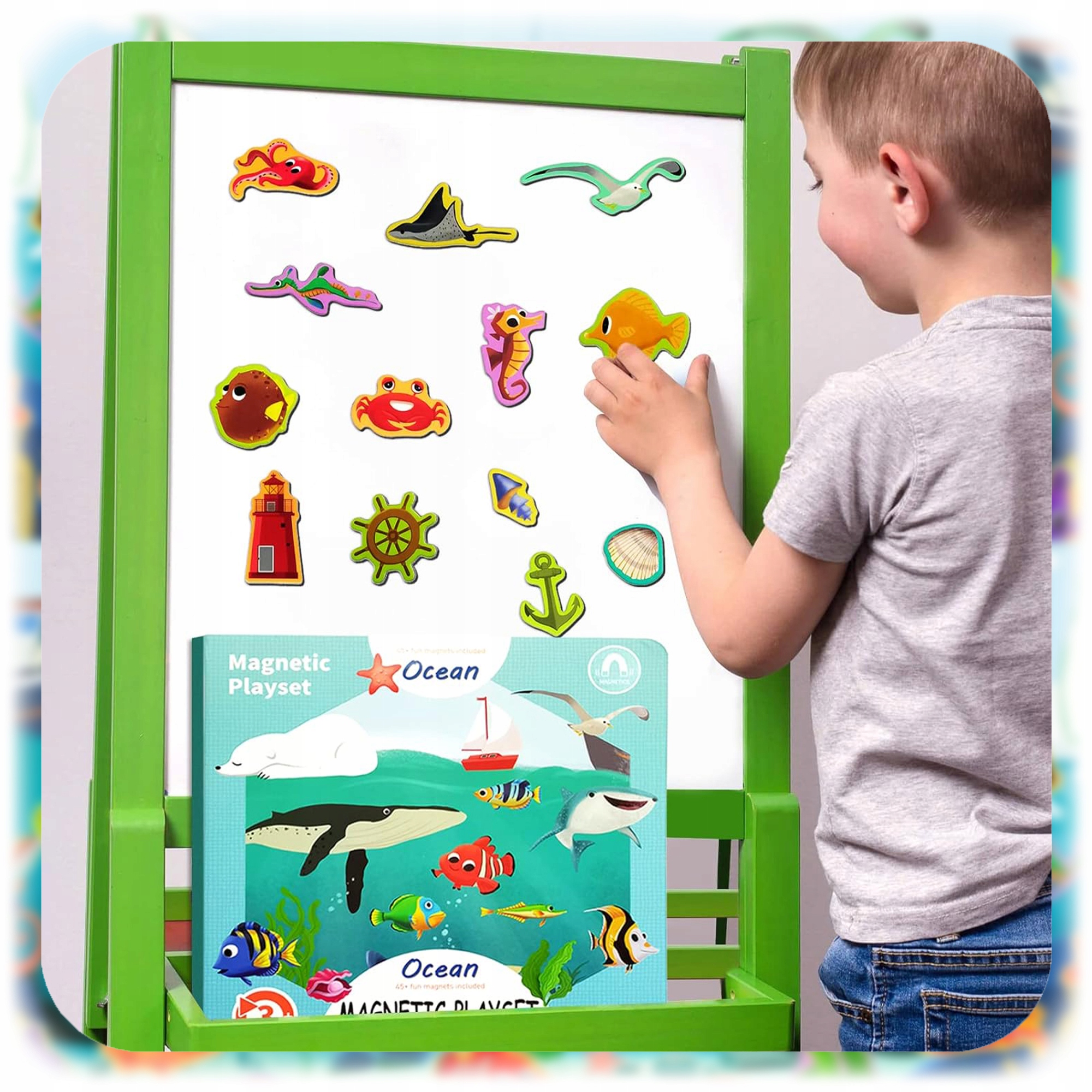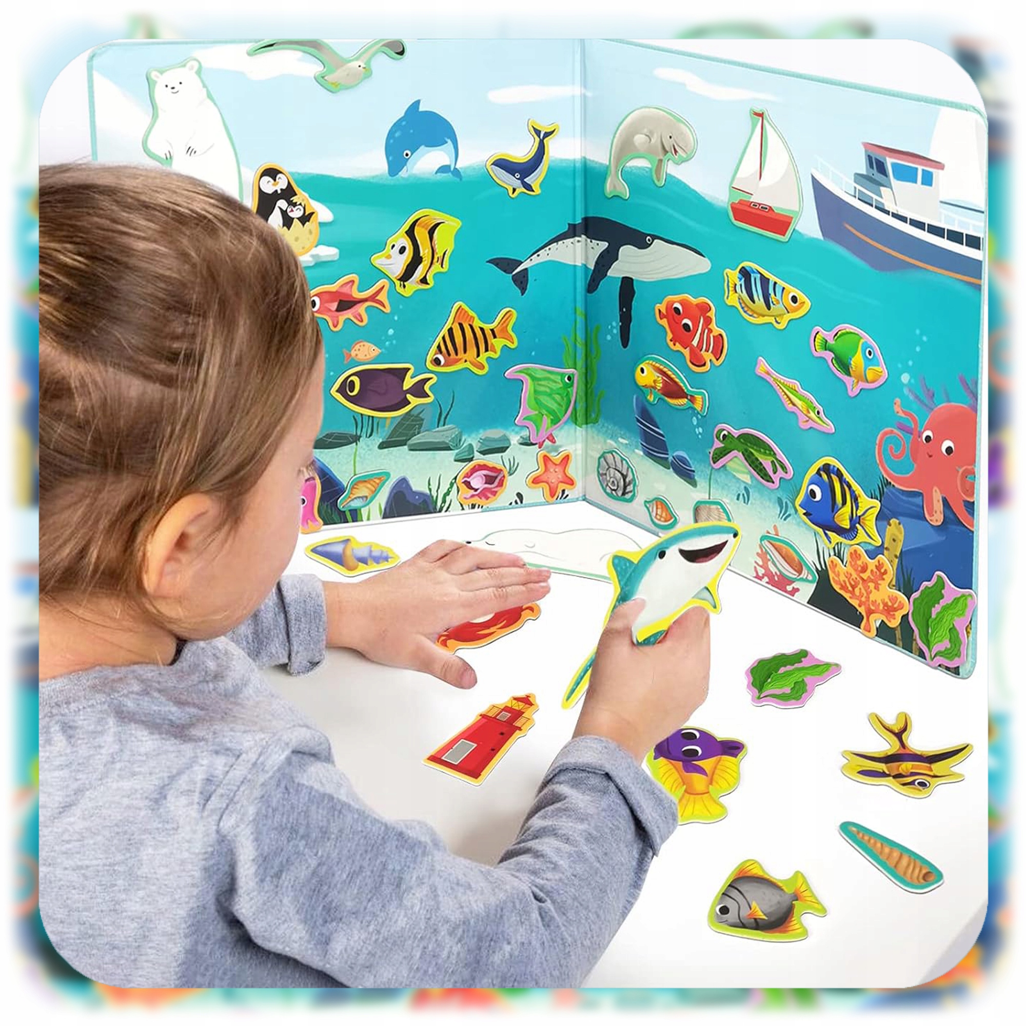 🐠 50 барвистих магнітів - океан, повне життя! 4 Дитина може вільно розміщувати їх на складовій дошці, створюючи власні морські історії!