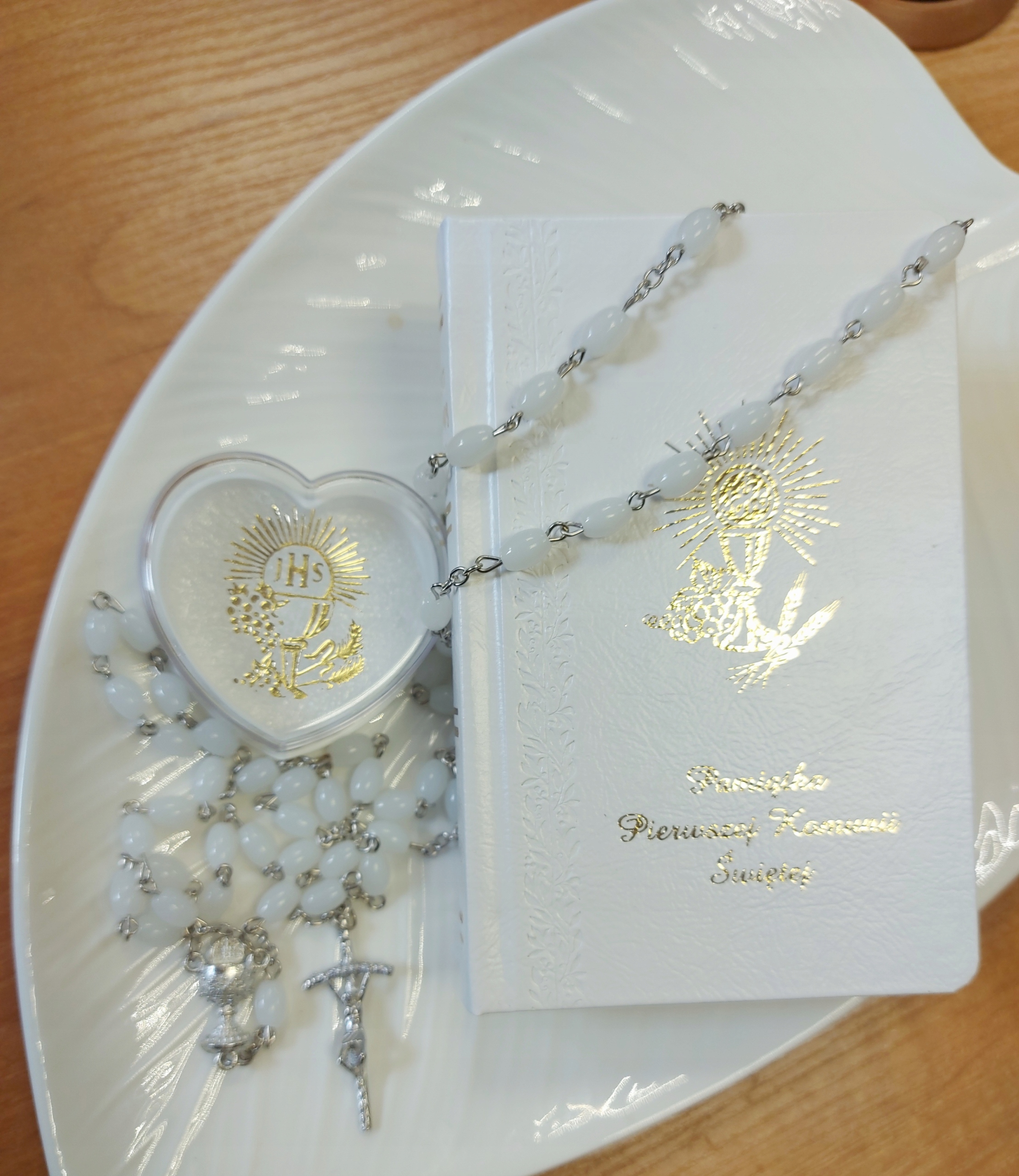Перше Святе Причастя – це дуже важливе свято для всіх вірних, а не лише дітей, які вперше приступають до повного Таїнства Євхаристії. Невід’ємним елементом цього прекрасного моменту є розарій. Пропонована нами продукція стане чудовим сувеніром на довгі роки, нагадуючи вам про цей важливий момент у вашому житті. Вервиця для Першого Причастя виготовлена з чорного бісеру у формі серця.