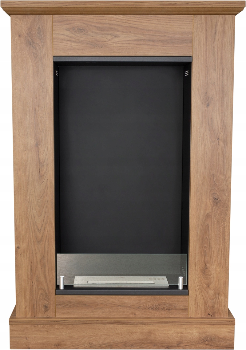 Біо -камін, виготовлений з високоякісного MDF, закінченого шпоном у кольорі натурального дуба та шведського порошку, пофарбованого порошковою фарбою в кольоровому чорному конструкційному килимку. Кожна деталь виконання подбала, а також про безпеку використання.