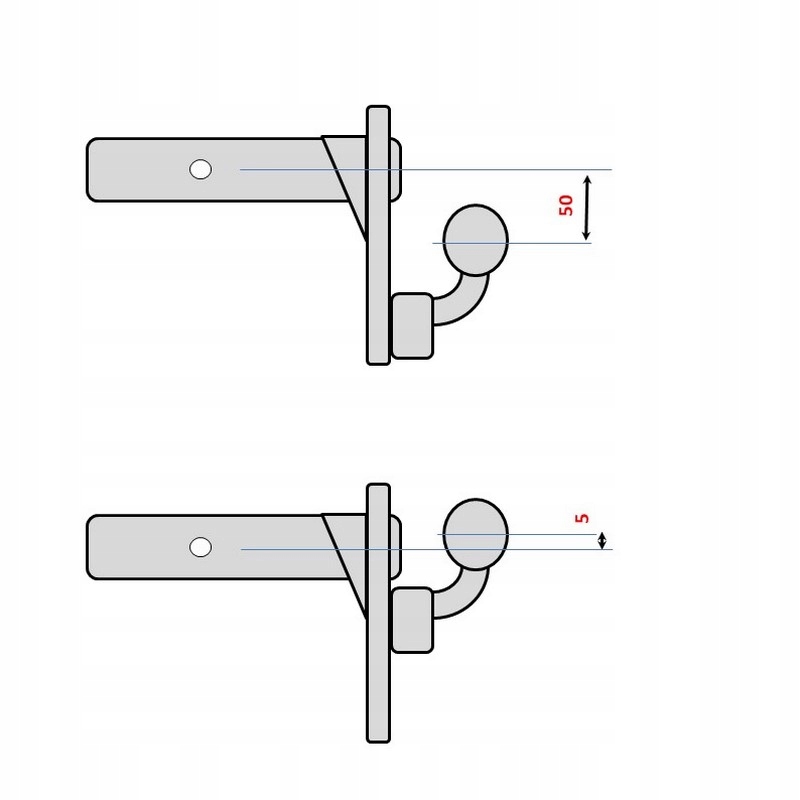 Доступна висота: +5 мм, -50 мм (висота центру кульки, виміряна відносно центру гнізда для кріплення адаптера)