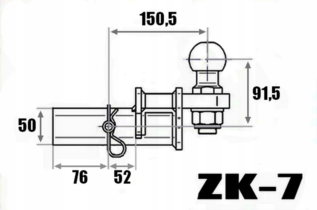 вертикальне збільшення (висота від центру отвору для шпильки до центру кулі-гачка) - 91,5 мм