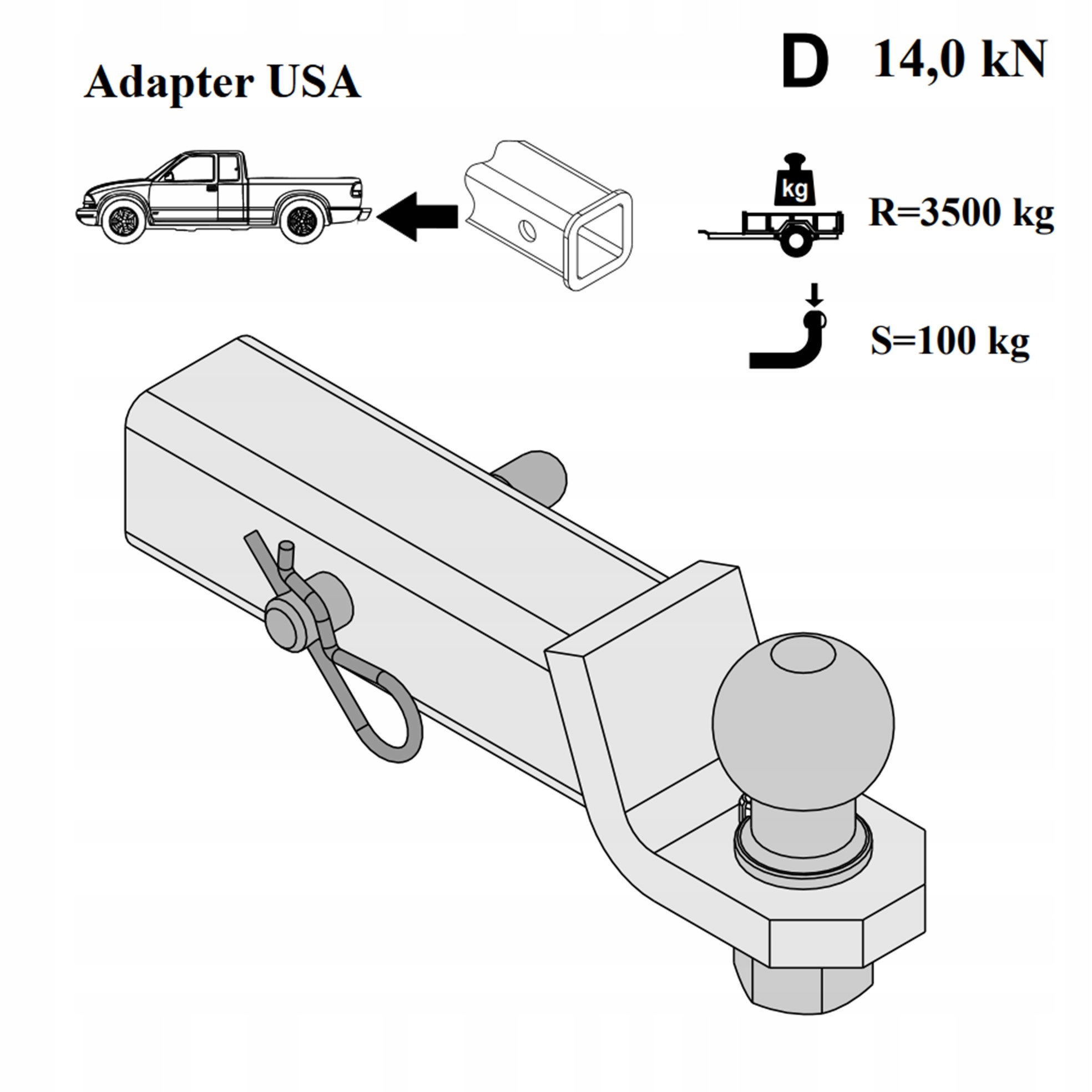 БУКСИРУВАЛЬНИЙ ГАК USA ADAPTER BALL 51x51 мм (+25 мм)