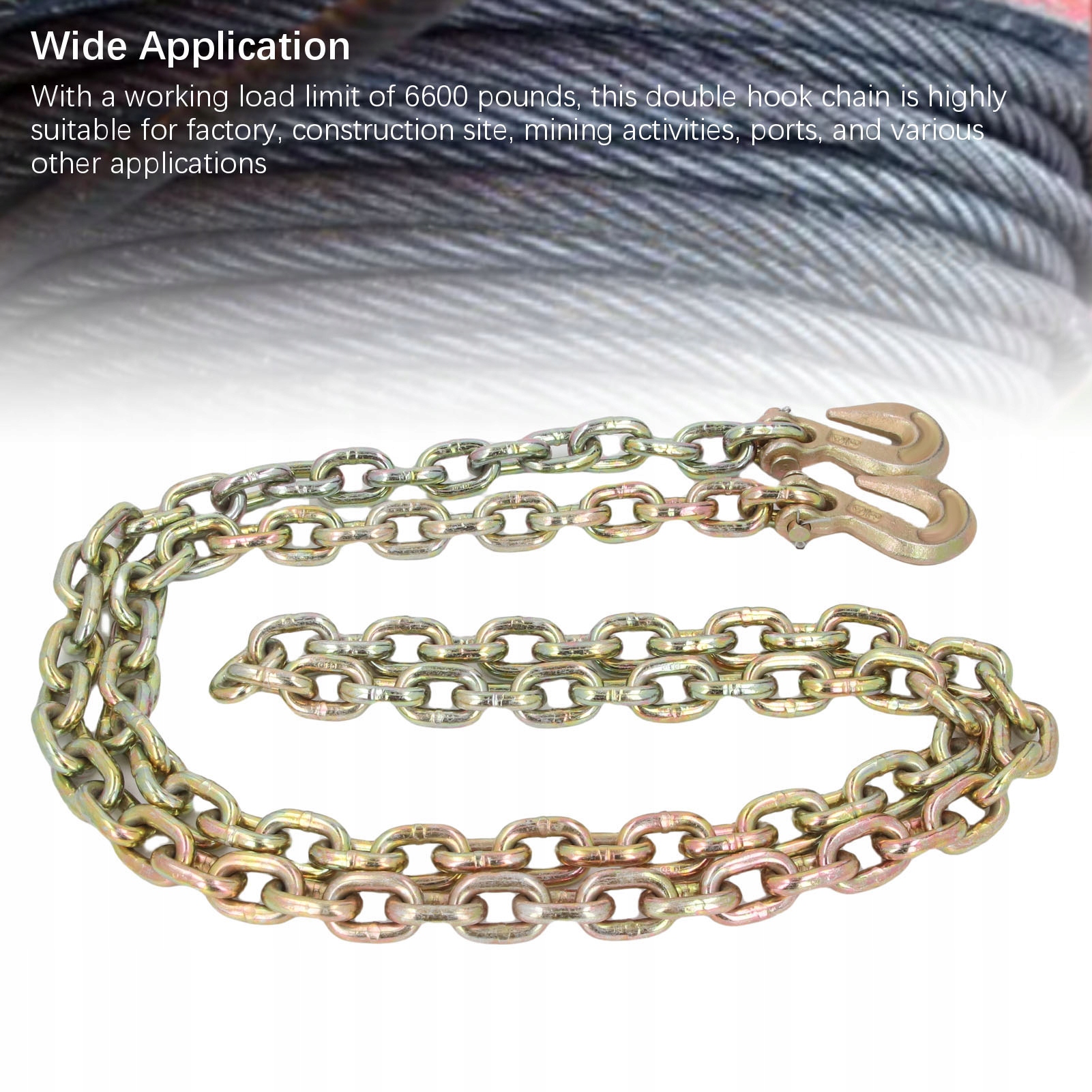 5. Технічні характеристики: Цей ланцюг для буксирування з подвійним гаком має розміри 3 метри (10 футів), специфікація ланцюга 3/8 дюйма, виготовлена з марганцевої сталі G70. Він пропонує безпечне та широке застосування
