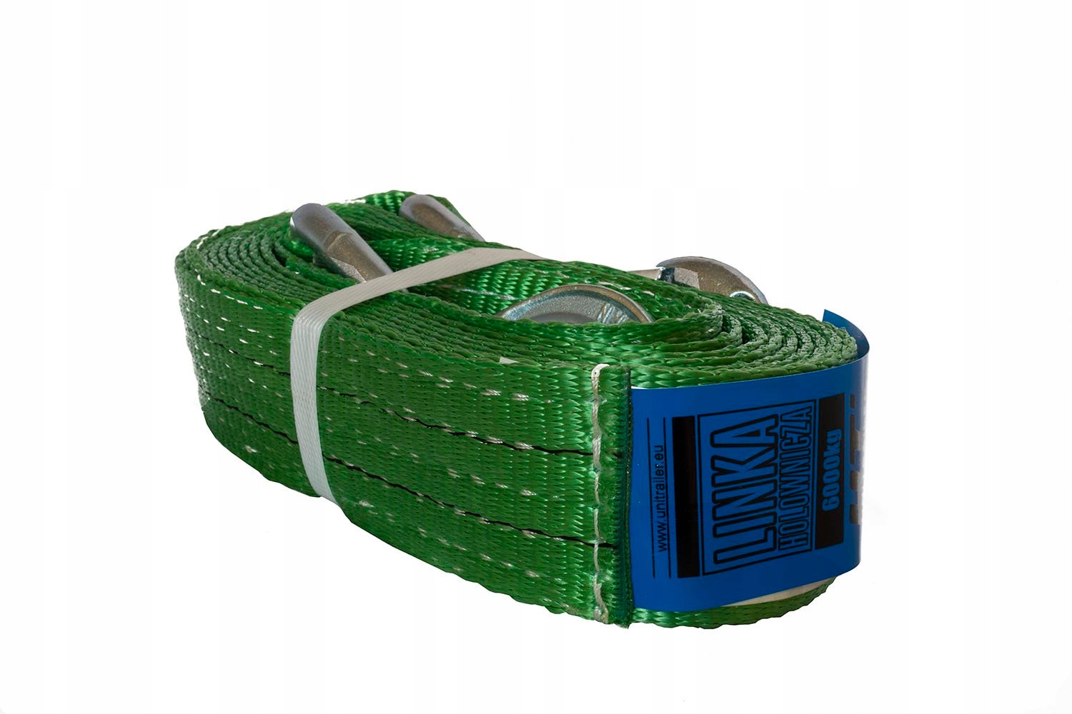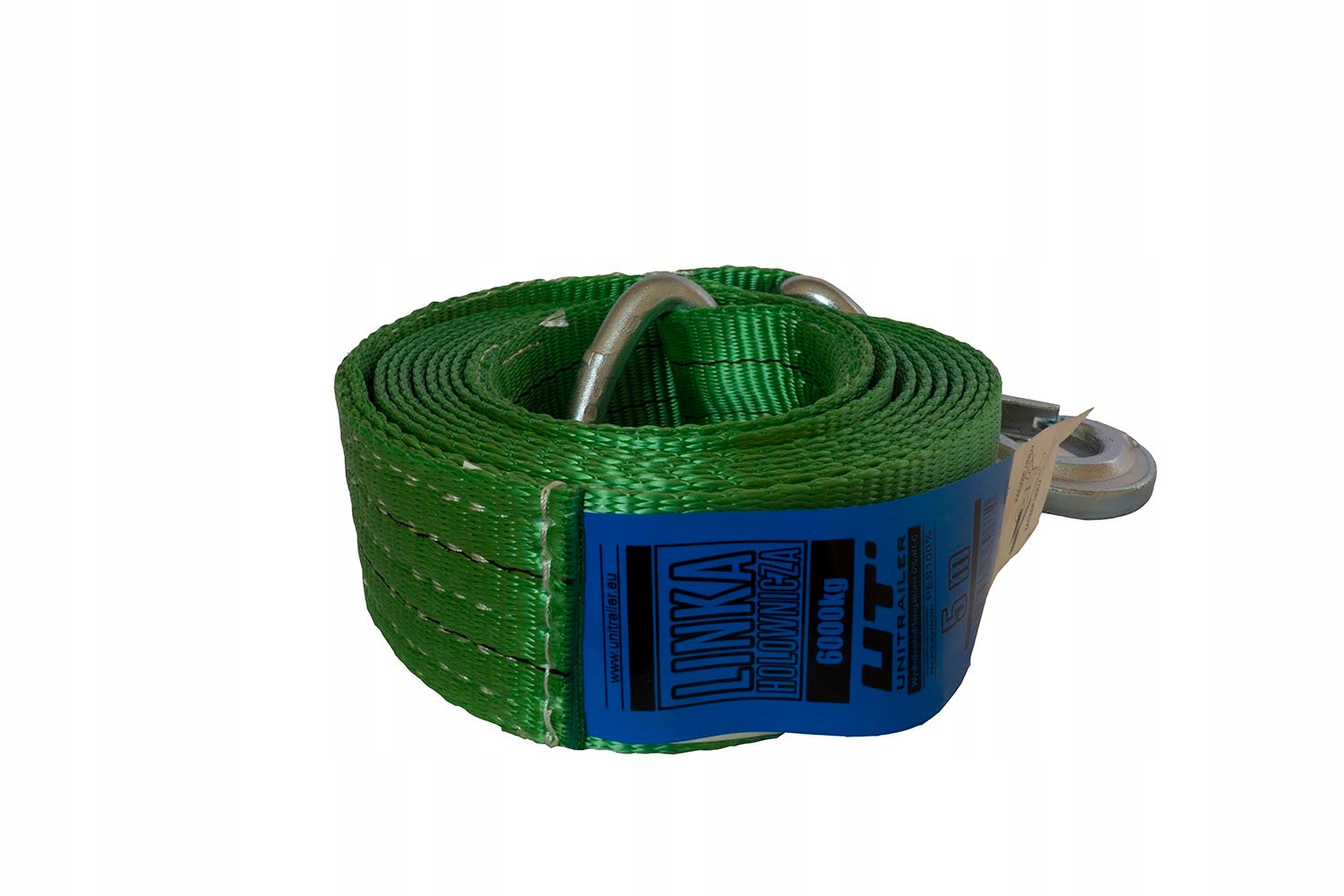 Міцний буксирний трос з високоякісної поліефірної тканини. Його робоче навантаження становить 6000 кг. Довжина мотузки 5 метрів, ширина 50 мм. Він закінчений гачками для фіксації з обох кінців. Товар виготовлено в Польщі.
