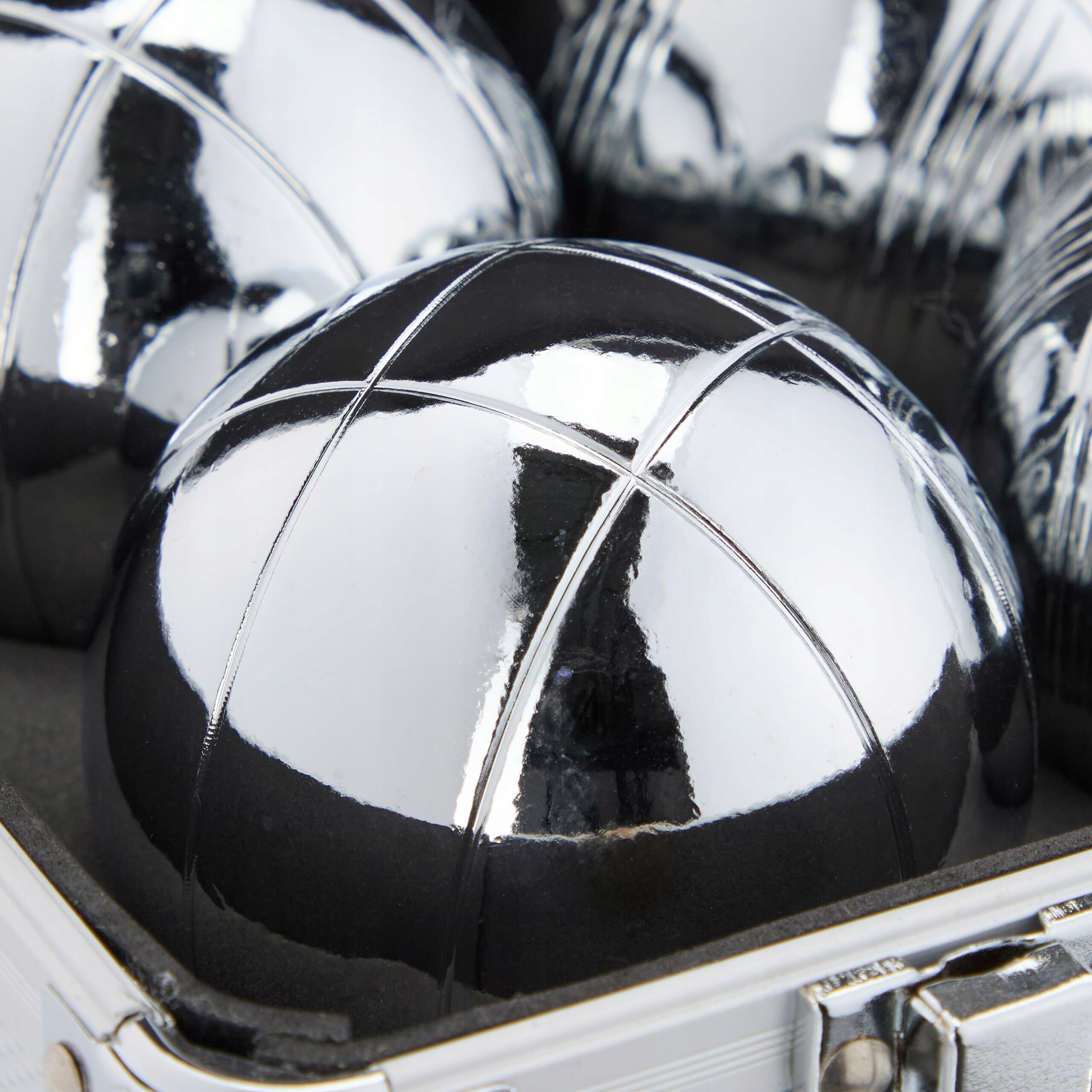 кульки Boule RelaxDays, 6 сталевих кульок, алмаз: 72 мм, встановлені з прицілами, лічильником відстані та металевою валізою, граючи в Bocce, сріблястий колір