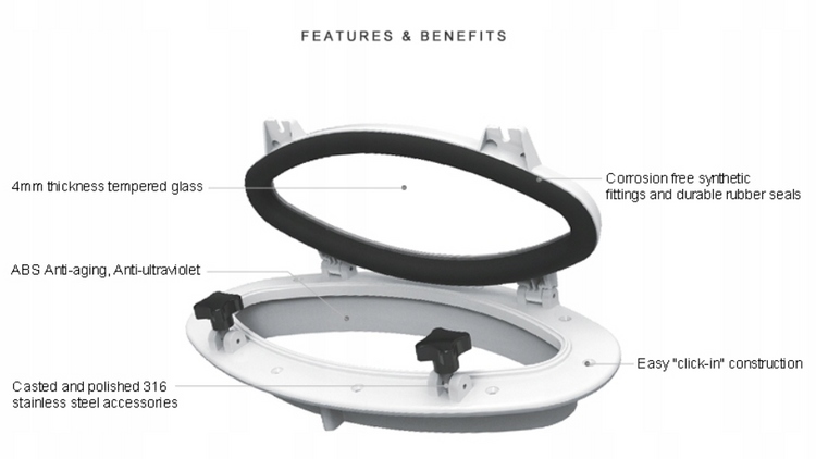 Bulaj okno eliptyczny otwierany 410/220 mm PCV