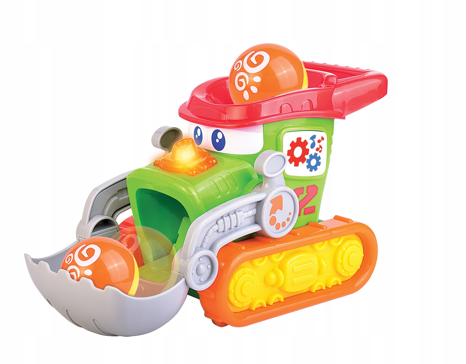 Кольорова кнопка, розташована на задній частині бульдозера збоку, активує звук і світло. Гра супроводжується піснею польською мовою.