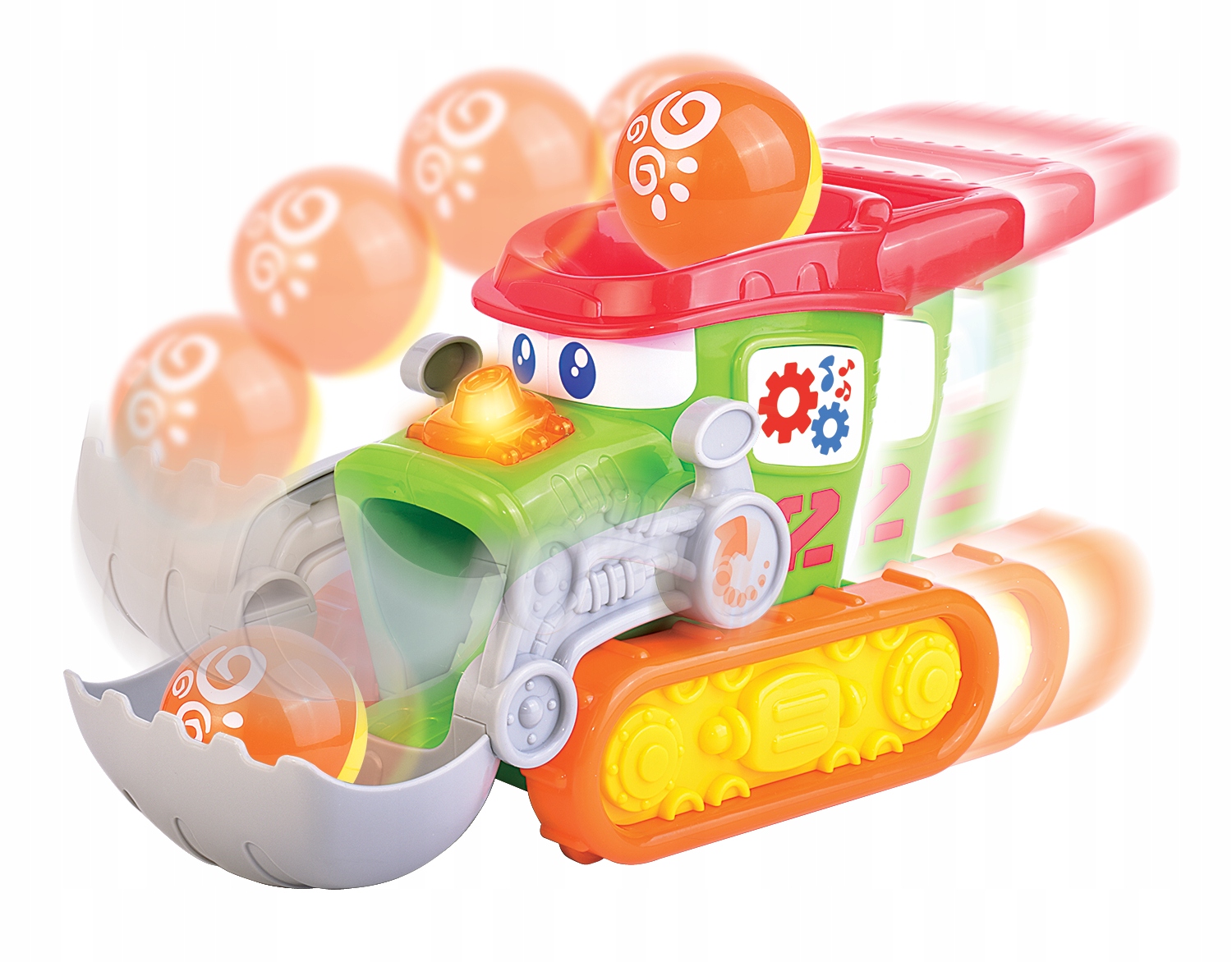 Автомобіль має рухома лопата, яка під час руху транспортного засобу вперед і назад піднімається й опускається, кидаючи м’яч у отвір у даху бульдозера, який потім падає прямо в лопату, щоб веселощі почалися знову.