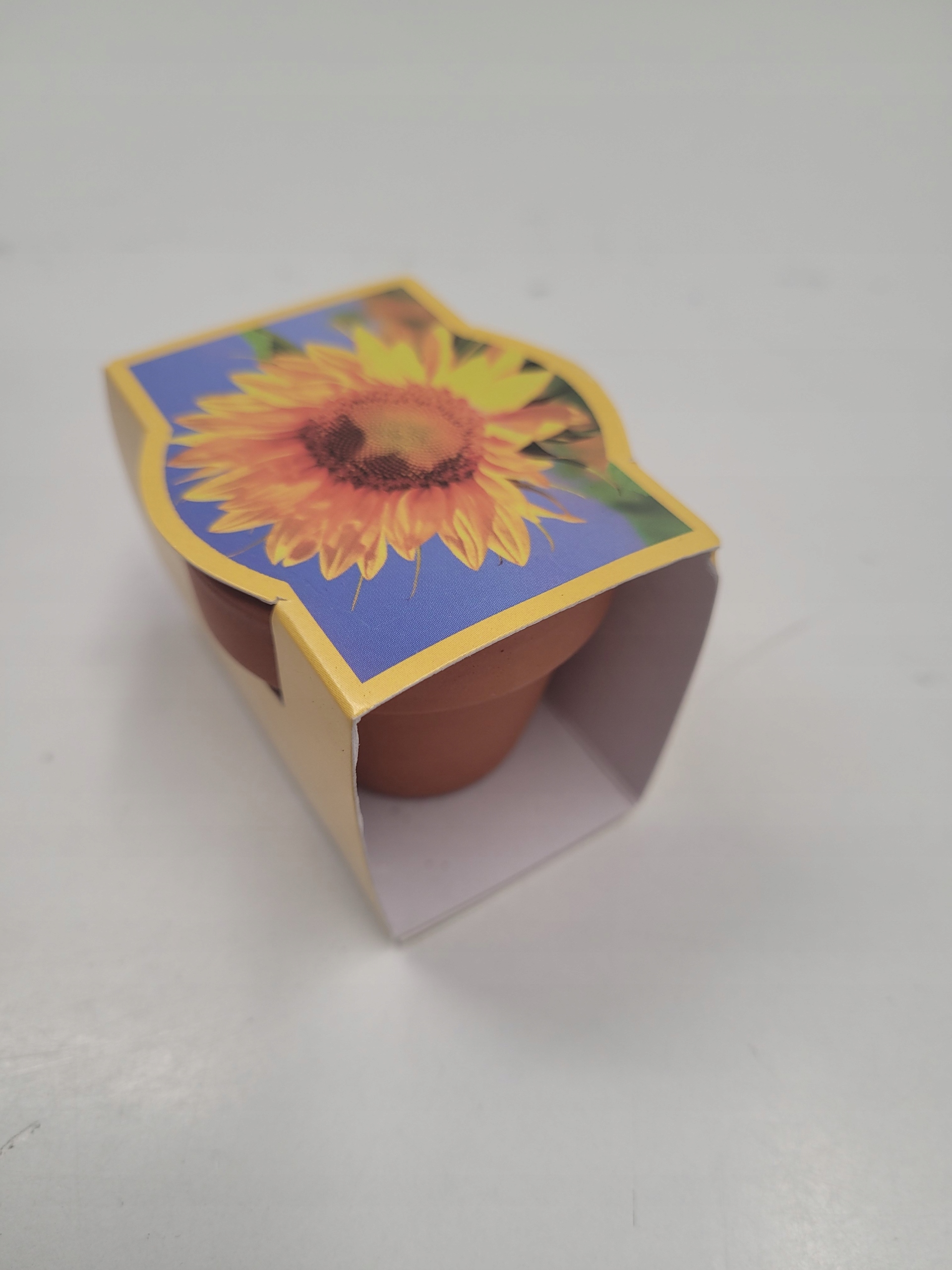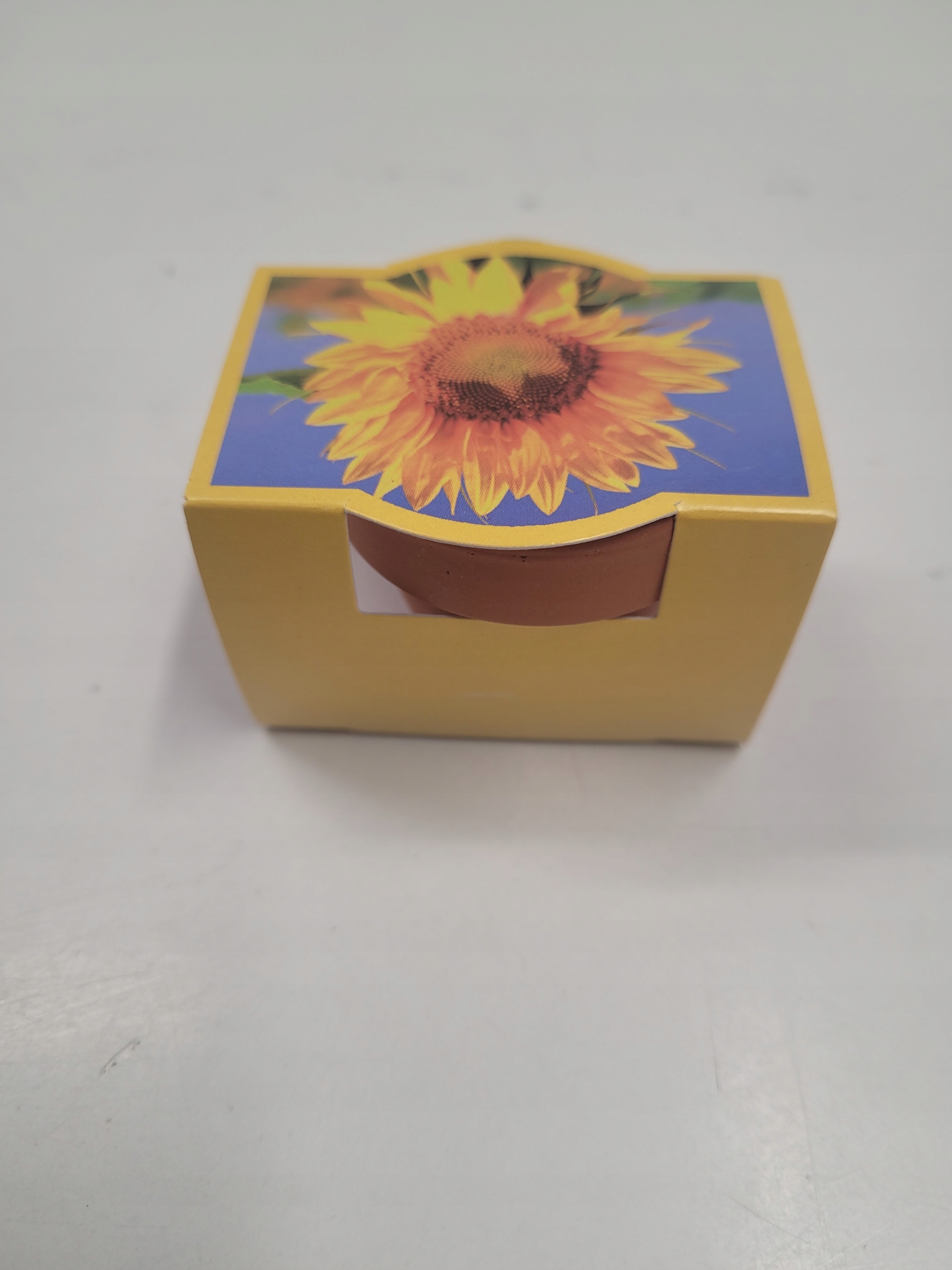 - Насіння квітів: маленький глиняний горщик містить насіння наших карликових соняшників