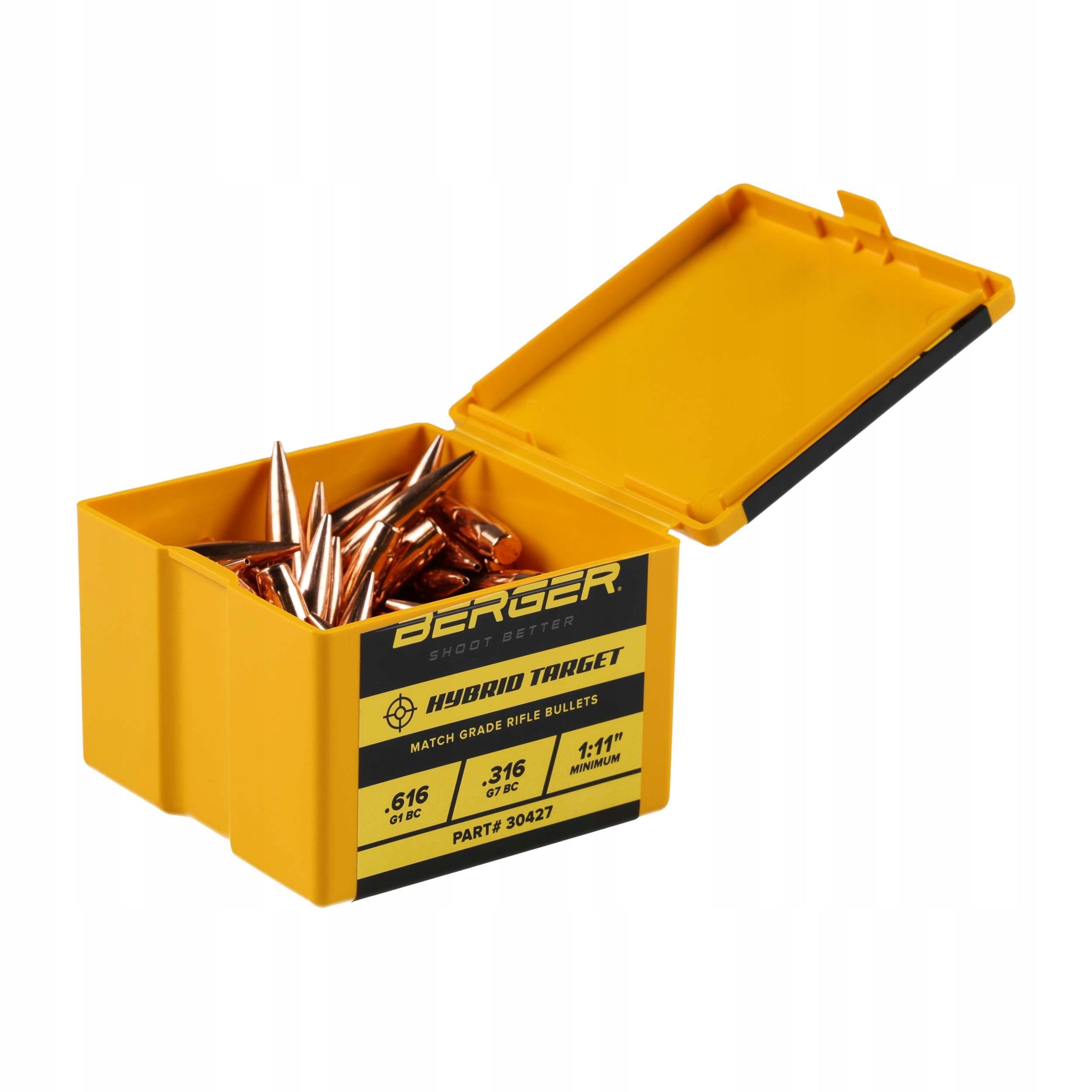 Останнє досягненнябренду Bergerв області надточної стрільби снарядами. Завдяки гібридному профілю кривизни кулі Long Range Hybrid Target характеризуються неперевершеним рівномірним розподілом ваги. Завдяки використанню доплерівського радіолокаційного аналізу в процесі проектування ракети досягають підтвердженого розсіювання менше 1%, що робить їх лідером ринку. Варіант калібру .30, вагою 200 гр.