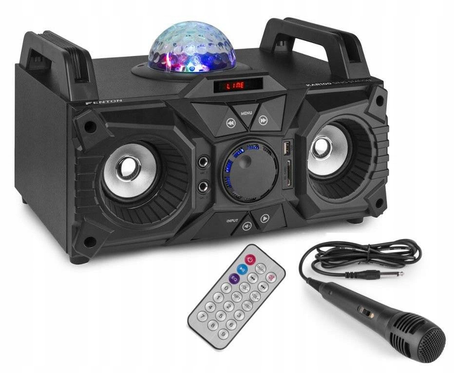 Де б ви не були, з караоке-системою Fenton KAR100 із вбудованим акумулятором ви можете співати будь-де. Бумбокс KAR100 дає вам можливість чудово розважатися протягом 3-4 годин, не шукаючи електричної розетки. KAR100 має Bluetooth для трансляції треків безпосередньо з вашого телефону або планшета, USB-MP3-плеєр і вхід AUX. Набір також постачається з мікрофоном і аудіокабелем, що робить його повністю завершеним і готовим слухати музику чи співати будь-коли та де завгодно.