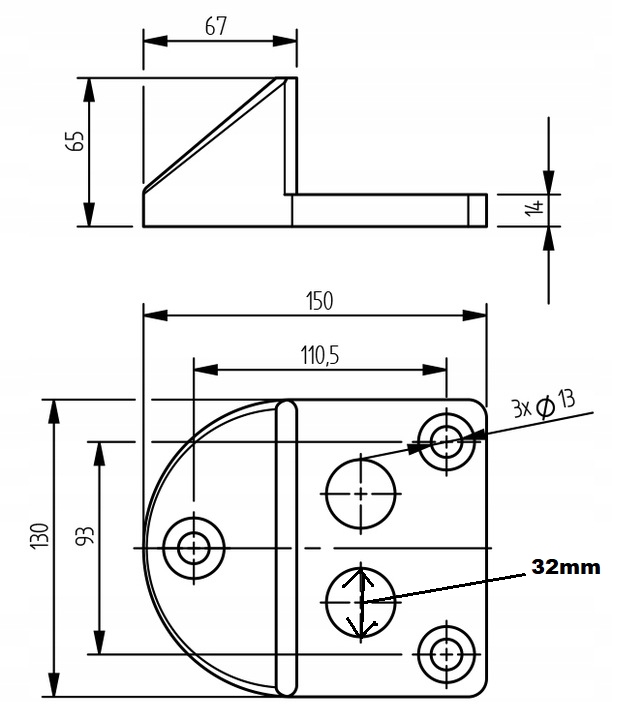 ✅Він має три кріпильні отвори для закручування та два отвори для болта . p>