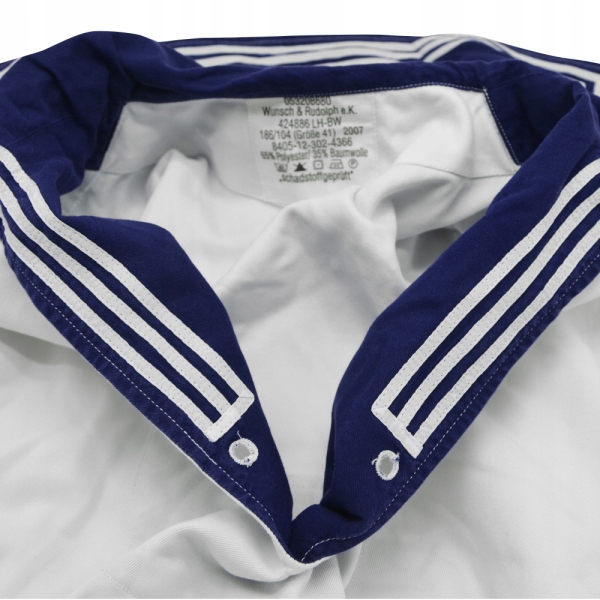 оригінальна толстовка/сорочка з ресурсів Bundeswehr. Використовується німецькими силами куртки. Він має довгий рукав і широкий виріз, добре відомий у морській піхоті BW. Він має синю обробку та постійний комір.