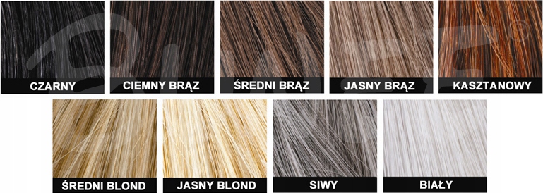 Косметика BUNEE доступна в 9 природних кольорах. Ці кольори також можна комбінувати для отримання практично будь-якого відтінку. Однак у більшості випадків це не обов’язково, тому що якщоBUNEEзлегка відрізняється від кольору волосся, це трохи освітлить або затемнить його. Зачіска буде виглядати абсолютно природно. Повний асортимент доступних кольорів представлений нижче.