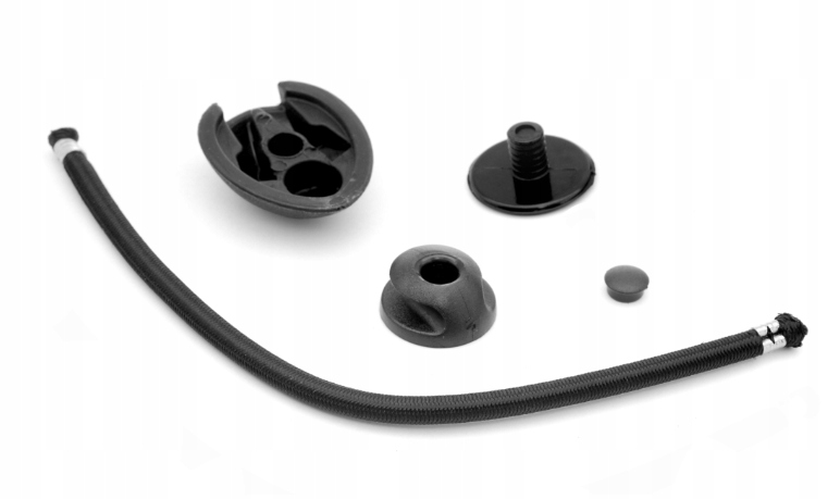 Набір складається з гумової петлі з плоскою головкою, яка прикріплена до тканина і пластиковий гачок для кріплення на корпус або палубу.