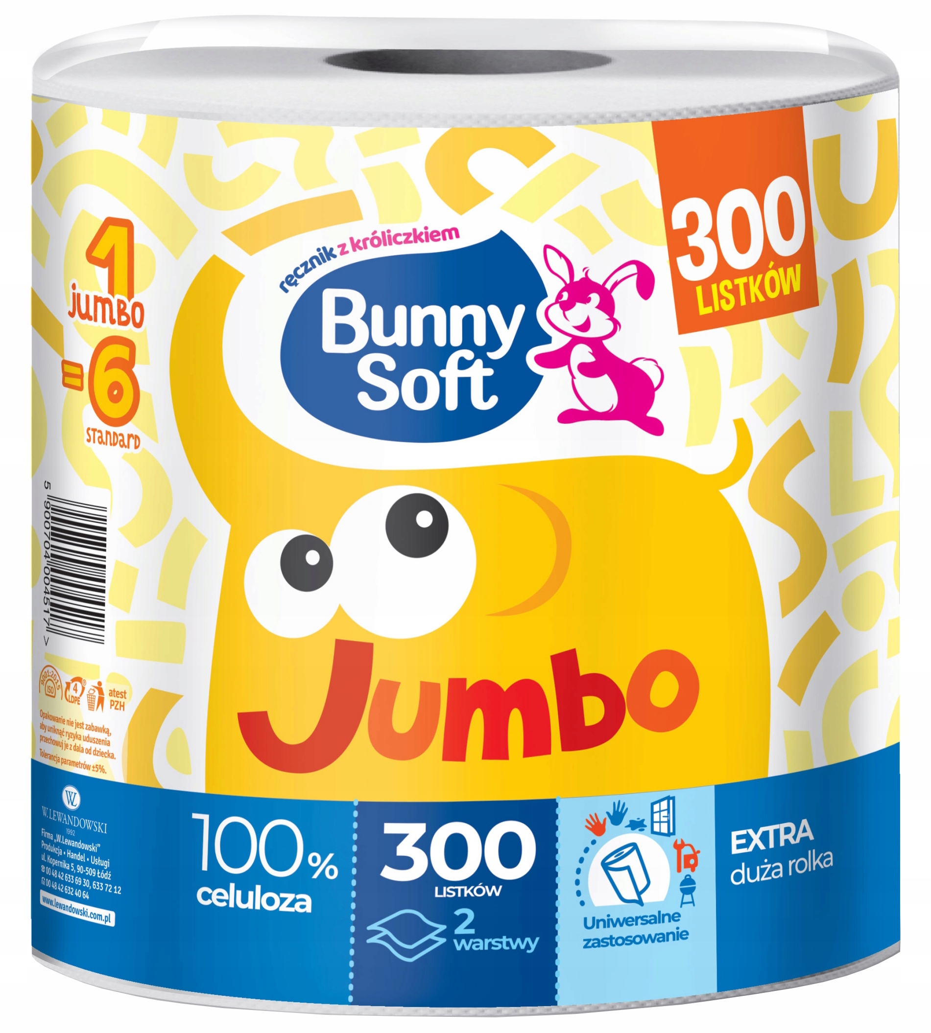 BUNNY SOFT - JUMBO - ПАПЕРОВИЙ РУШНИК 2 ШАРИ - ЦЕЛЮЛОЗА - 300 ЛИСТОЧКІВ