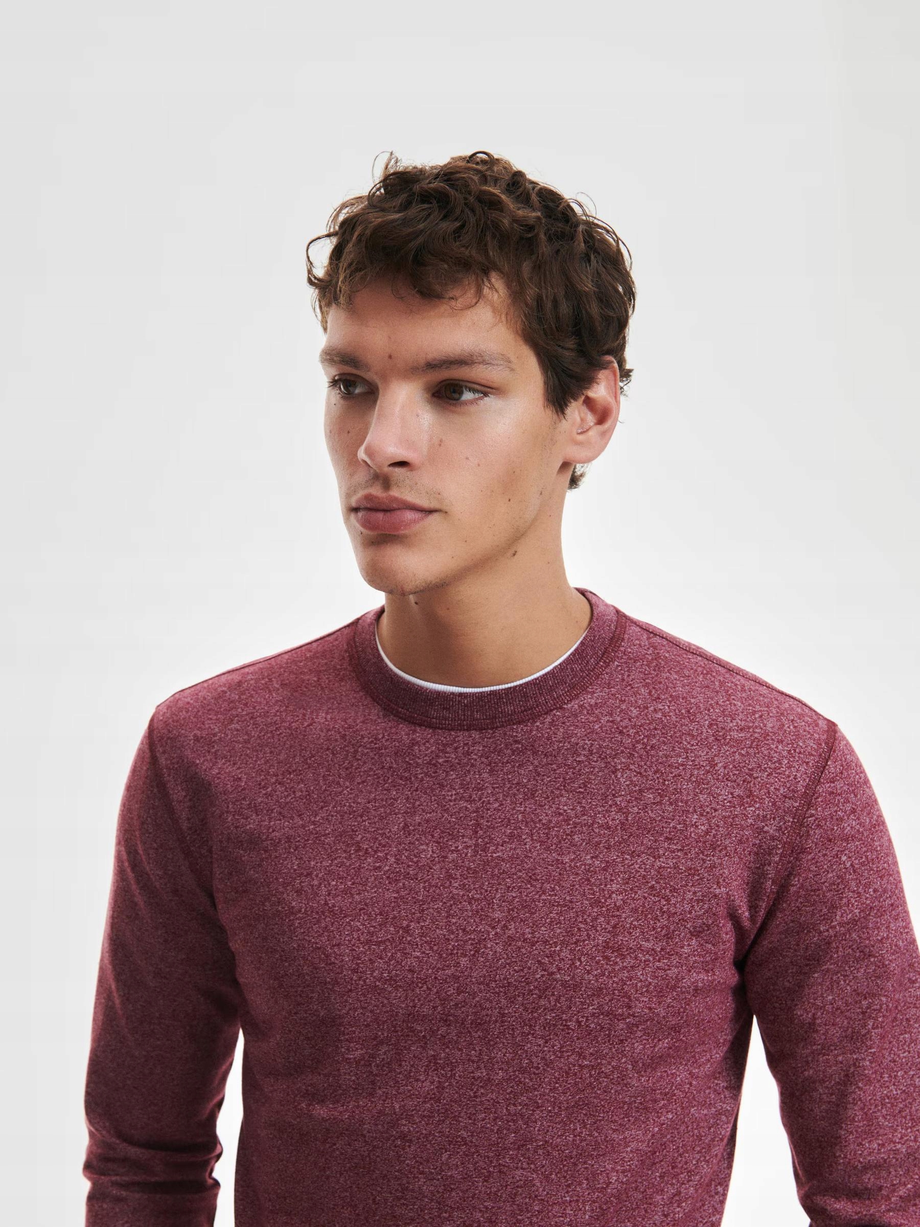 Бургундський гладкий класичний блузка з довгими рукавами круглої шиї XL