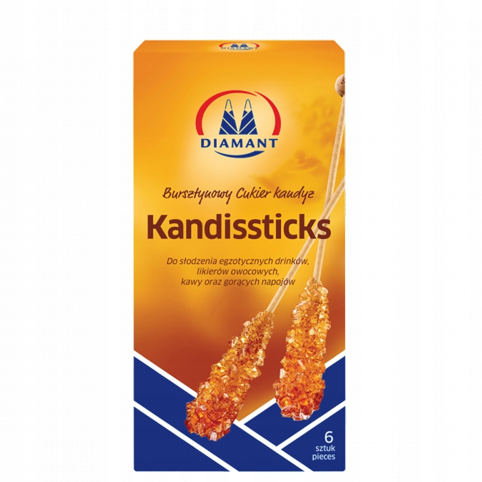 DIAMANT Amber Kandissticks - оригінальні мішалки, які завдяки своїй цікавій формі чудово виглядають і роблять подачу холодних і гарячих напоїв більш привабливою, підкреслюючи їх смак. Бурштинові підсолоджувачі підкреслюють природний аромат фруктів в екзотичних напоях і коктейлях. Вони також призначені для підсолоджування чорного чаю, додання йому елегантності та неповторного смаку.