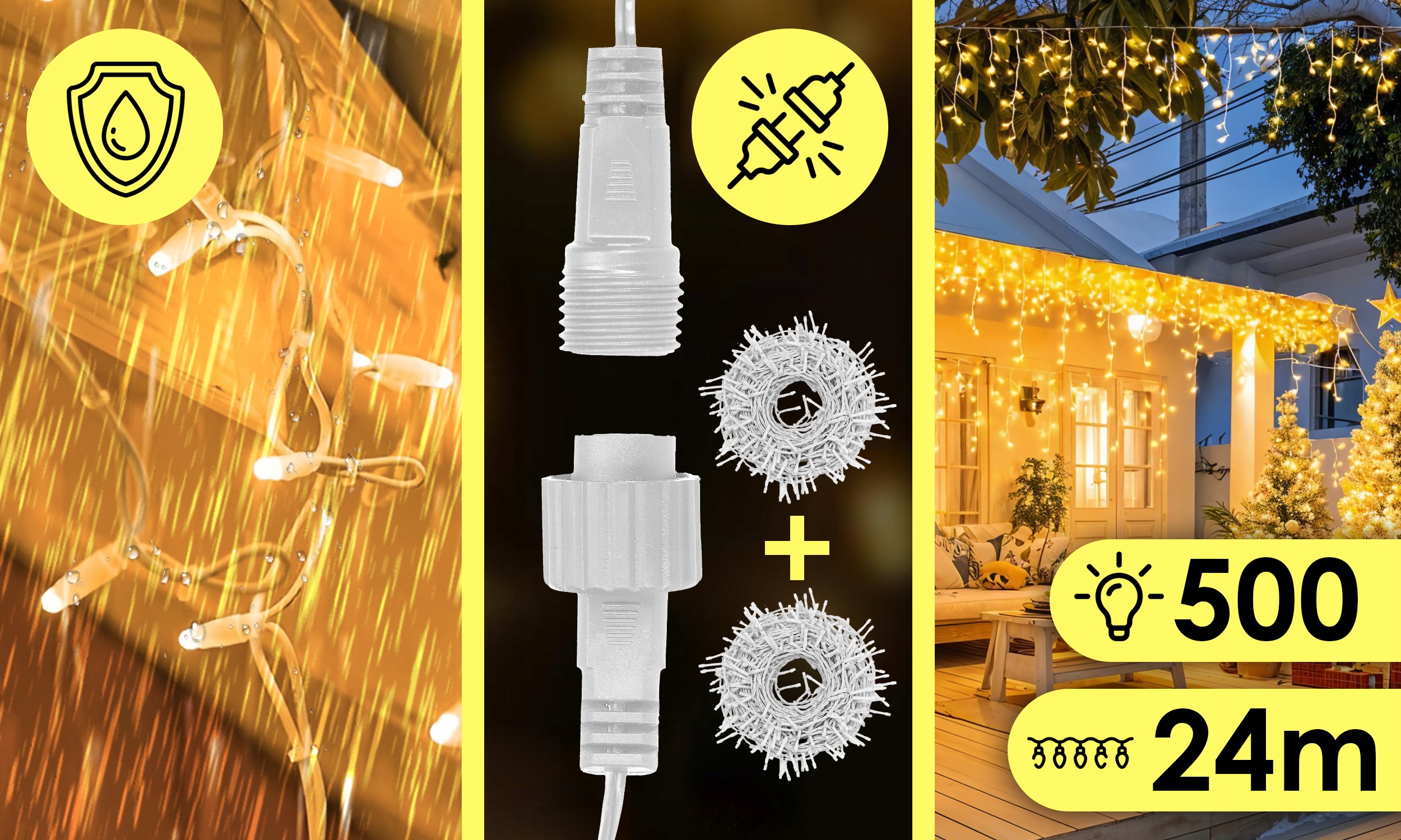 ICILIC ЛАМПИ 500LED / 24M ЗОВНІШНІ РІЗДВЯНІ СВІТЛІ IP44 + СПАЛАХ