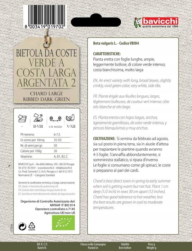 Буряк темно-зелений з білими ребрами, роменська капуста, мангольд, посівне насіння, 10г, Bavicchi