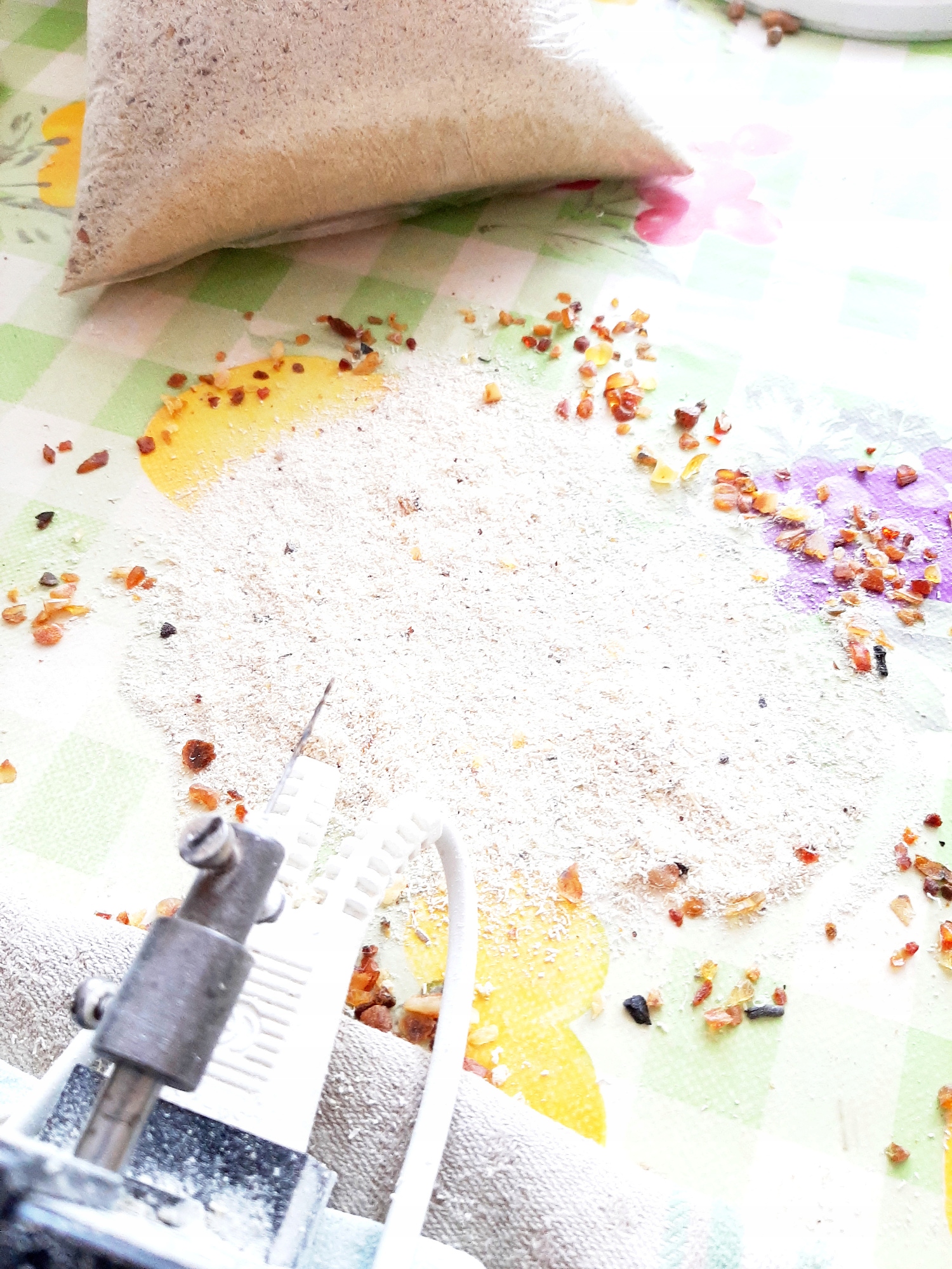 Бурштиновий пил утворюється під час свердління бурштину, який потім використовується для виготовлення намистин або браслетів. Не містить бруду чи добавок – лише природа.
