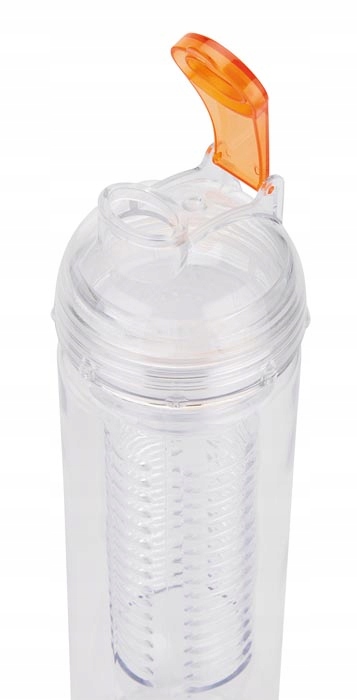 Пляшка виготовлена з твердого прозорого тритану та оранжевого пластику.