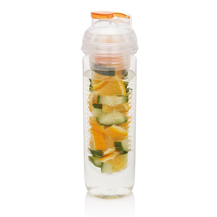 Тому він оснащений спеціальною вставкою, в яку можна покласти нарізані фрукти та листочки м'яти. Ви також можете наповнити його кубиками льоду.
