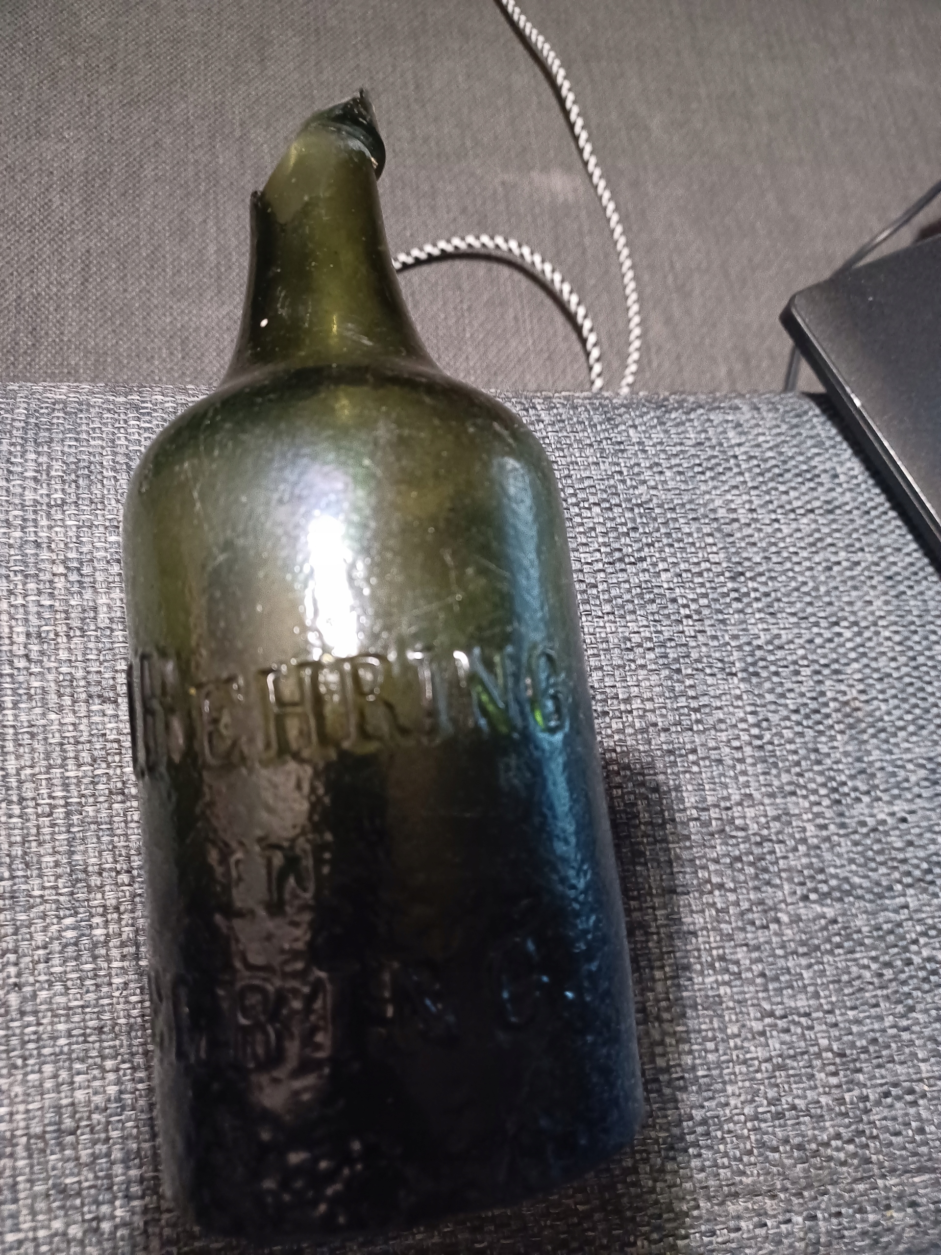 Butelka H. Behring in Elbing koń. XIX w. uszkodzona