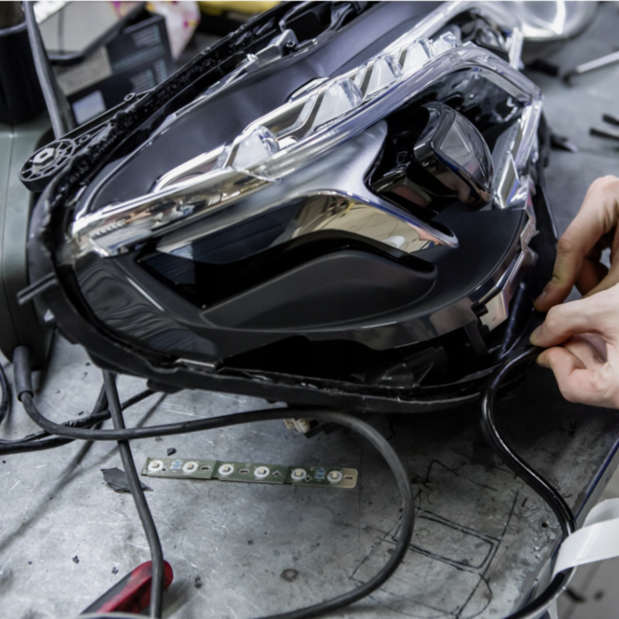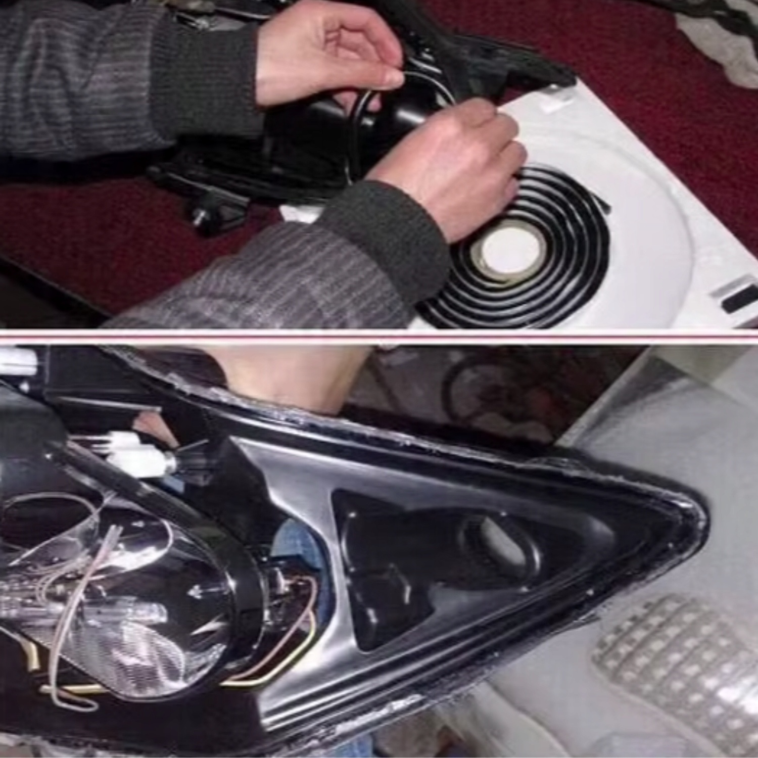42⃣ Нанесіть рядок клею до корпусу фари , а потім покладіть на місце світильника.