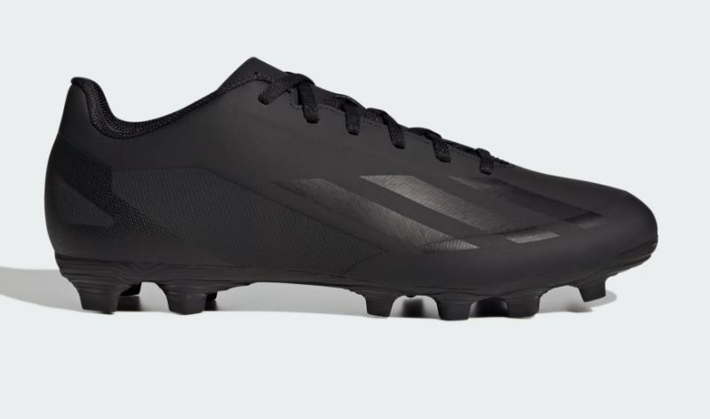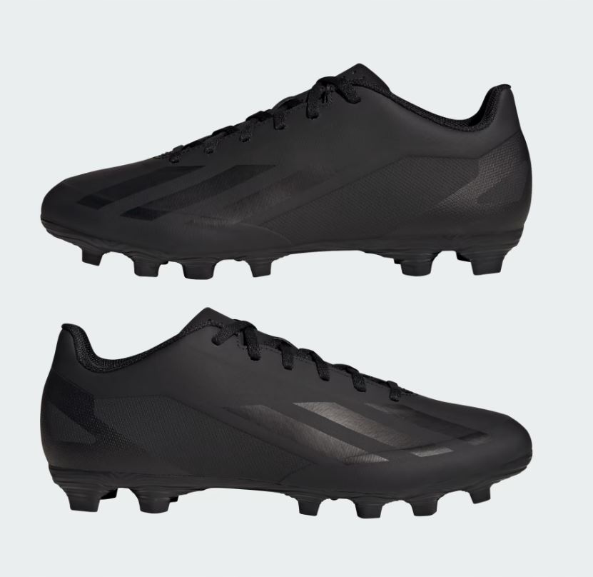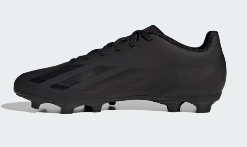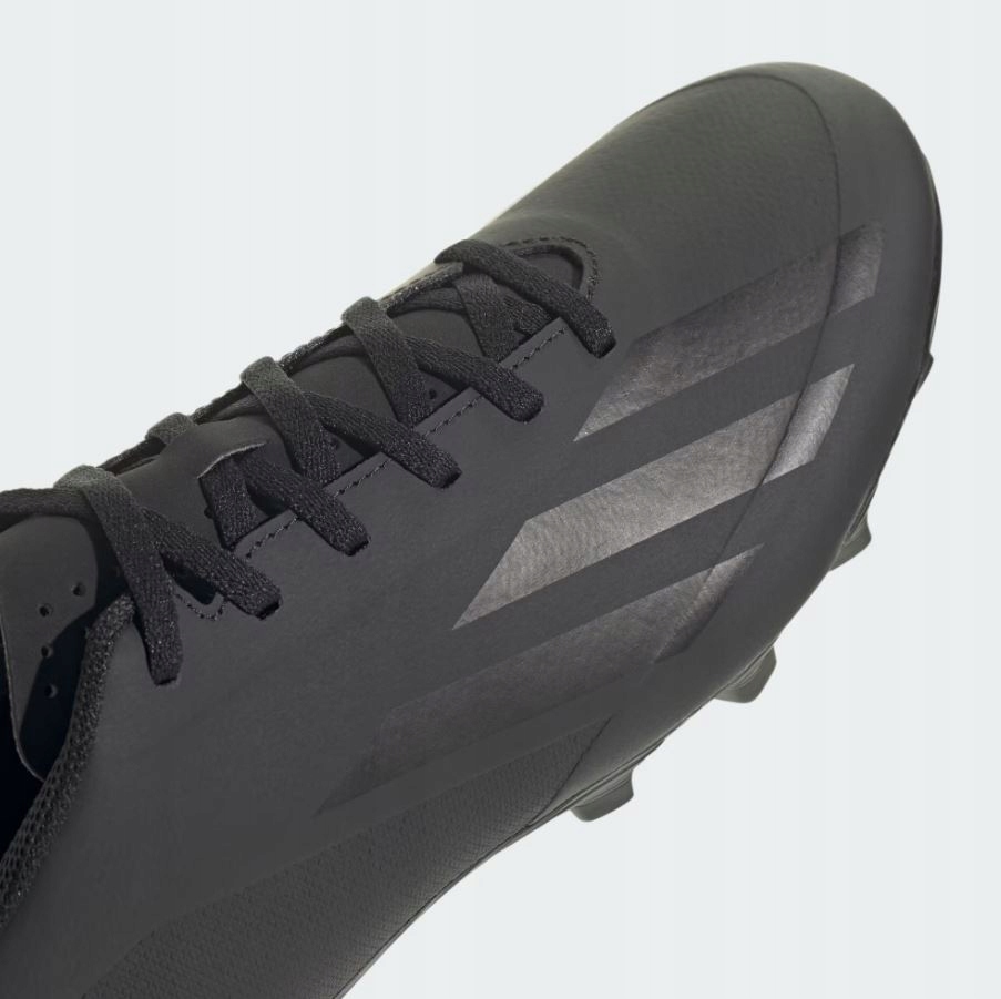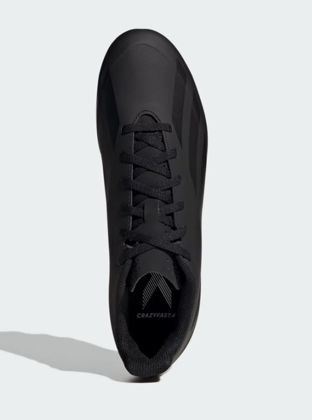 Adidas X Crazyfast.4 FxG – це легкі динамічні бутси, розроблені для швидких гравців. Їх дизайн зосереджений на спритності, блискавичному прискоренні та повному контролі під час гри. Верх, повністю чорний, має гладку синтетичну поверхню, яка добре прилягає до стопи та забезпечує міцне відчуття м’яча. Модель оснащена універсальною підошвою FxG - вона добре працює на твердому натуральному газоні, штучній траві та на твердих поверхнях, забезпечуючи оптимальне зчеплення завдяки різноспрямованим шипам.