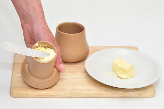Унікальна структура маслянки завжди підтримує масло в ідеальній консистенції для намазування, ізолюючи його від зовнішнього тепла та охолоджуючи масло за допомогою води на дні посуду. Завдяки цьому смак і свіжість захищені герметичною закупоркою, а масло тривалий час зберігає свої смакові властивості і завжди готове до вживання. Використання нашої маслянки усуває такі проблеми, як масло, яке тане в теплі дні, або занадто жорстке масло, щоб намазати його на скибку хліба. Крім того, це подовжує час його зберігання, не користуючись холодильником!