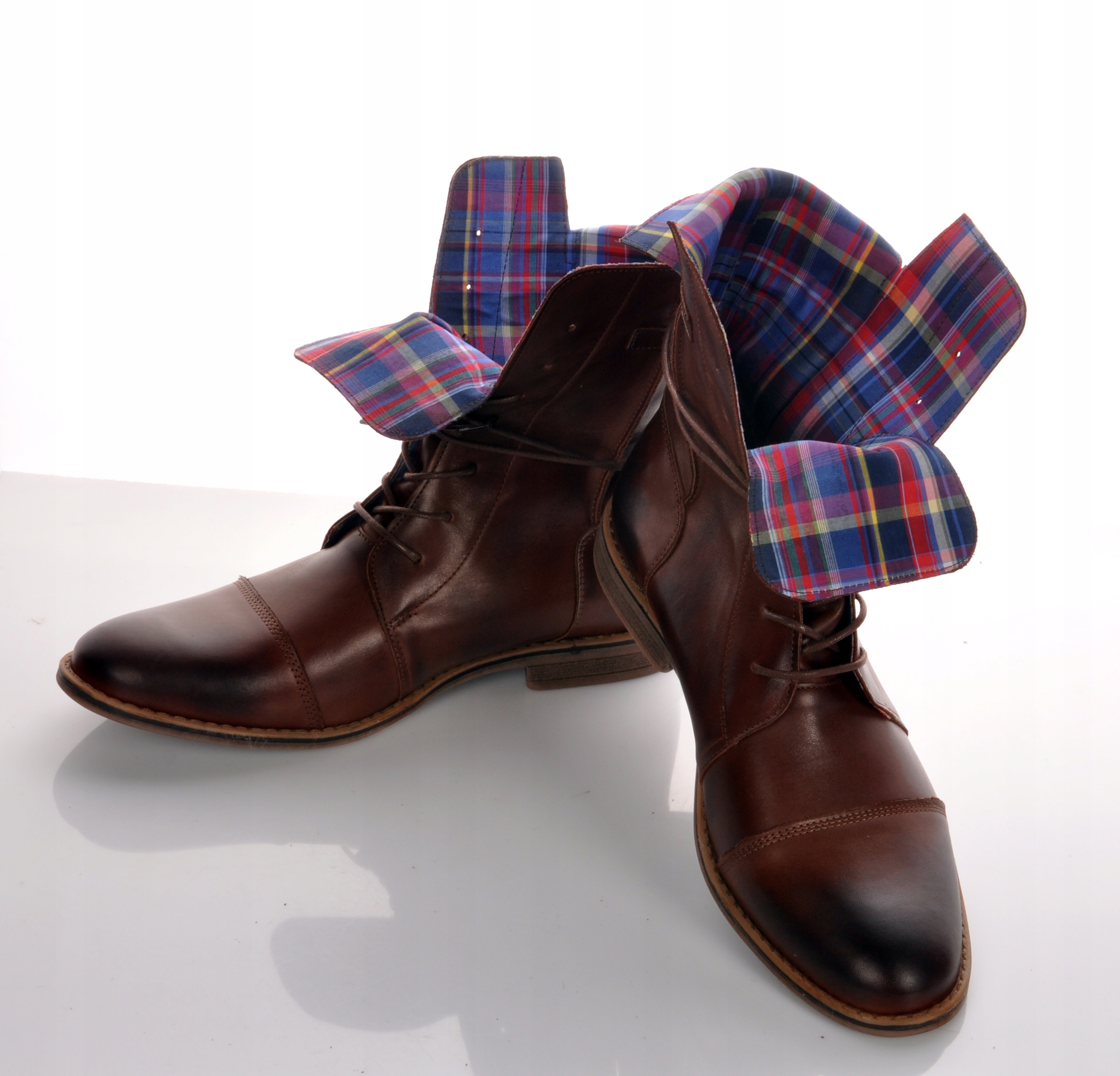 BUTY BULLET WYSOKIE WYWIJANE brąz KRATA SKÓRA SZTYBLETY trzewiki CASUAL