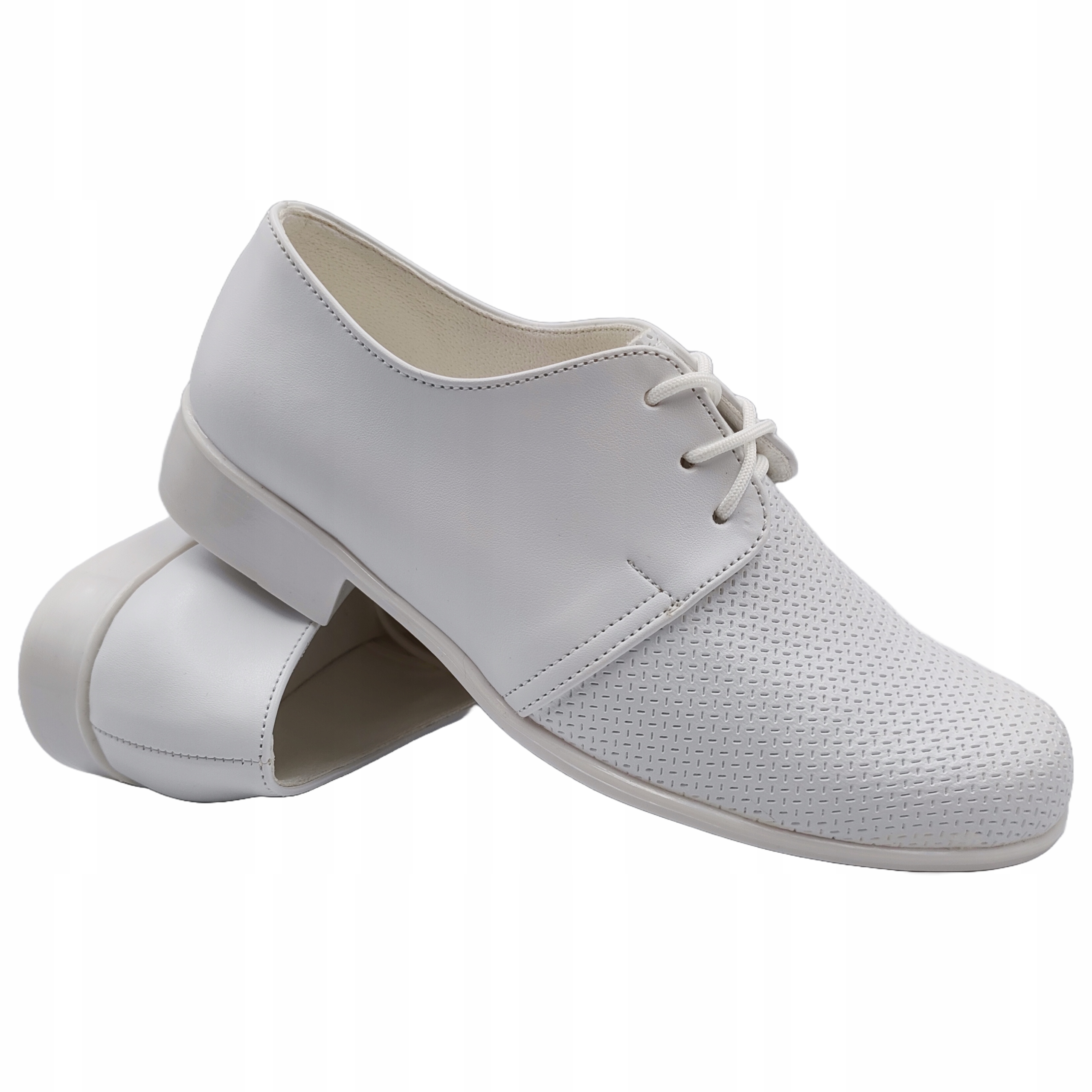 BUTY KOMUNIJNE Chłopięce Wizytowe POLSKIE Białe Półbuty Eleganckie