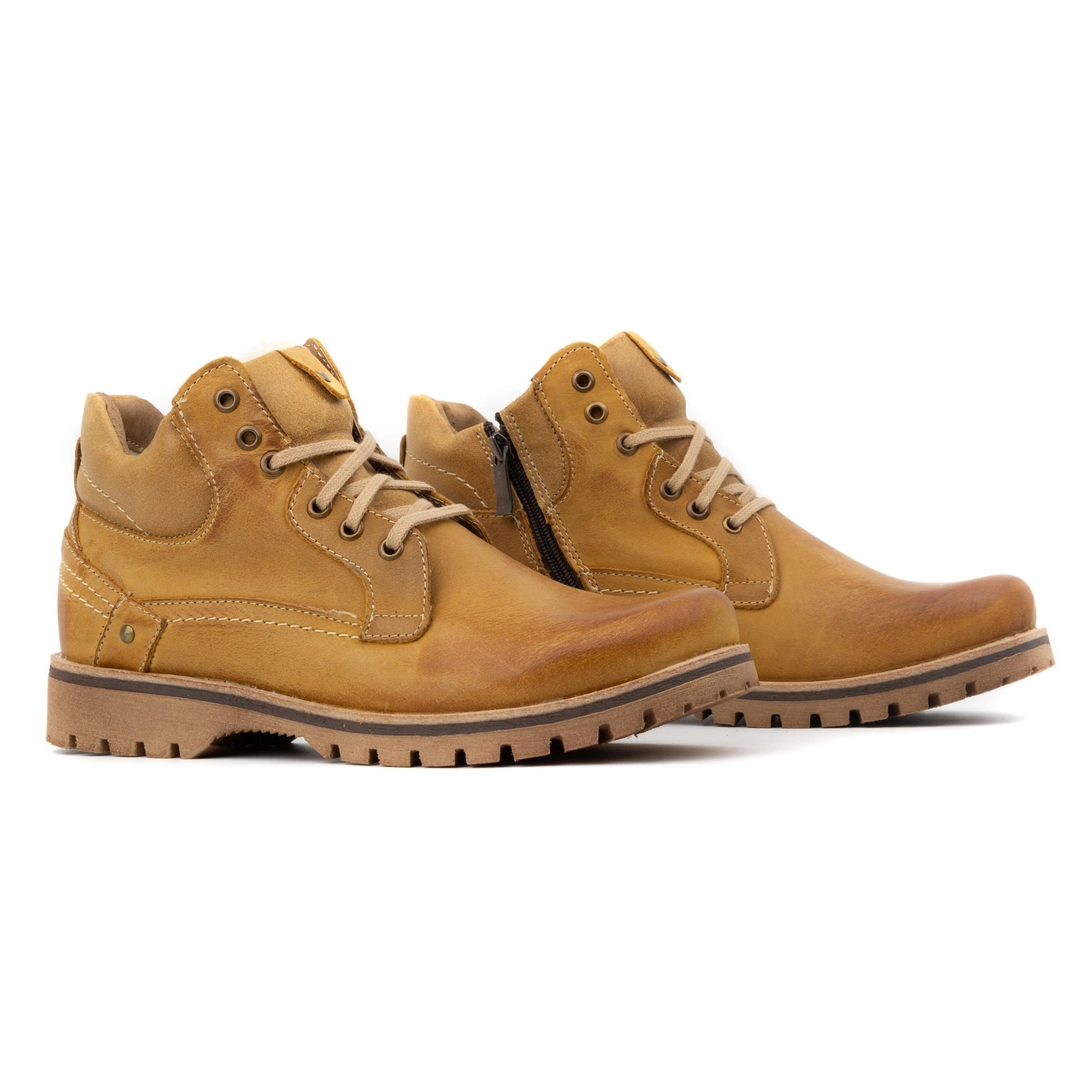 BUTY MĘSKIE SKÓRZANE OCIEPLANE TRZEWIKI POLSKIE ZIMOWE 885 CAMEL