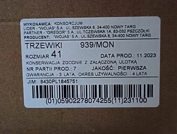 Просматривая «BUTY WOJSKOWE TRZEWIKI WP 939/MON WOJAS NOWE 41», вы можете быть уверены, что данный товар из каталога «[rubrica_name]» будет доставлен из Польши и проверен на целостность. В цене товара, указанной на сайте, учтена доставка из Польши. Внимание!!! Товары для Евросоюза, согласно законодательству стран Евросоюза, могут отличаться упаковкой или наполнением.