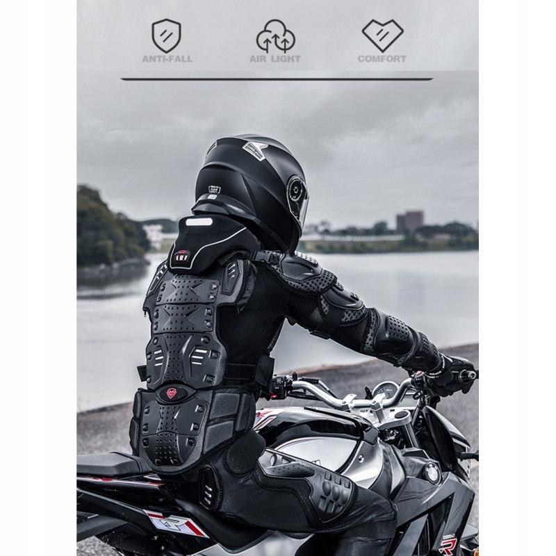 ✅broja Motorcycle оснащений захисниками ліктя, шиєю , руками та спиною, завдяки якому він забезпечує всебічний захист тіла. Захисники виготовляються з твердих матеріалів, які поглинають удари та мінімізують ризик травм під час нещасного випадку.