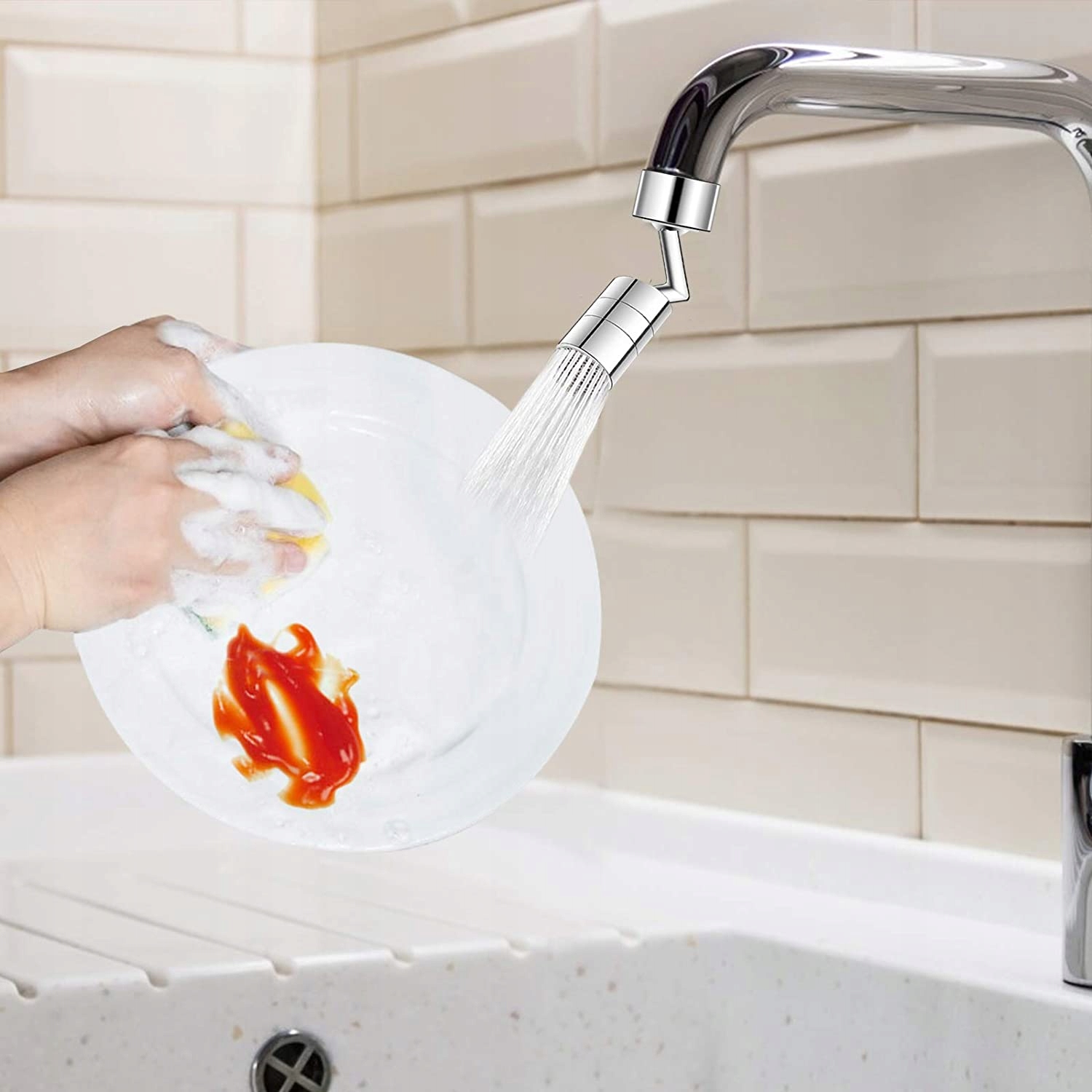 Кухонний аксесуар має 4-шаровий сітчастий фільтр, який дозволяє фільтрувати осад і забруднення. Крім того, продукт ідеально підходить для користувачів, які хочуть заощадити. Насадка може допомогти мінімізувати споживання води на 30–70% порівняно зі стандартним кухонним краном. Кришка доступна в універсальному сріблястому кольорі, що забезпечує ідеальне поєднання з будь-яким кухонним інтер'єром. Виріб підходить до 99% змішувачів для кухні та ванної кімнати.