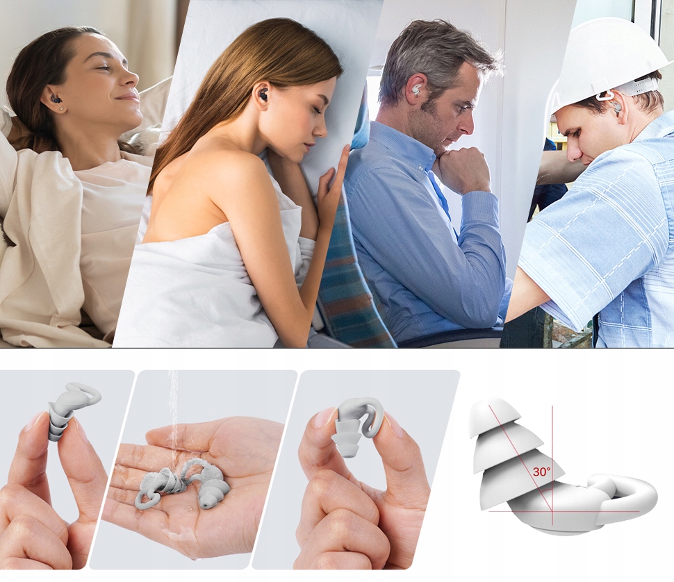 Пробки, виготовлені з високоякісного силікону з потрійною гумовою стрічкою, припиняють шум на високому рівні до 40 дБ.