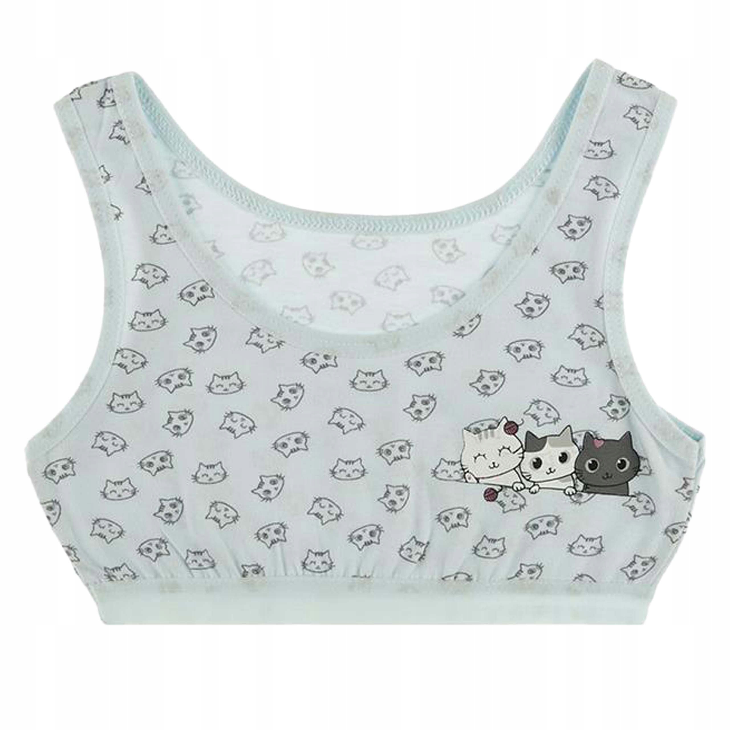Чудовий набір із 5 дитячих бюстгальтерів із зображенням кота. У комплект входять бюстгальтери чудових кольорів. Продукція LILLY BLING відрізняється високою якістю. Нижня білизна з високоякісної м'якої бавовни. Еластичні стрічки м'які і не розтягуються під час використання. Ідеально підходить як для занять спортом, так і для повсякденного використання.