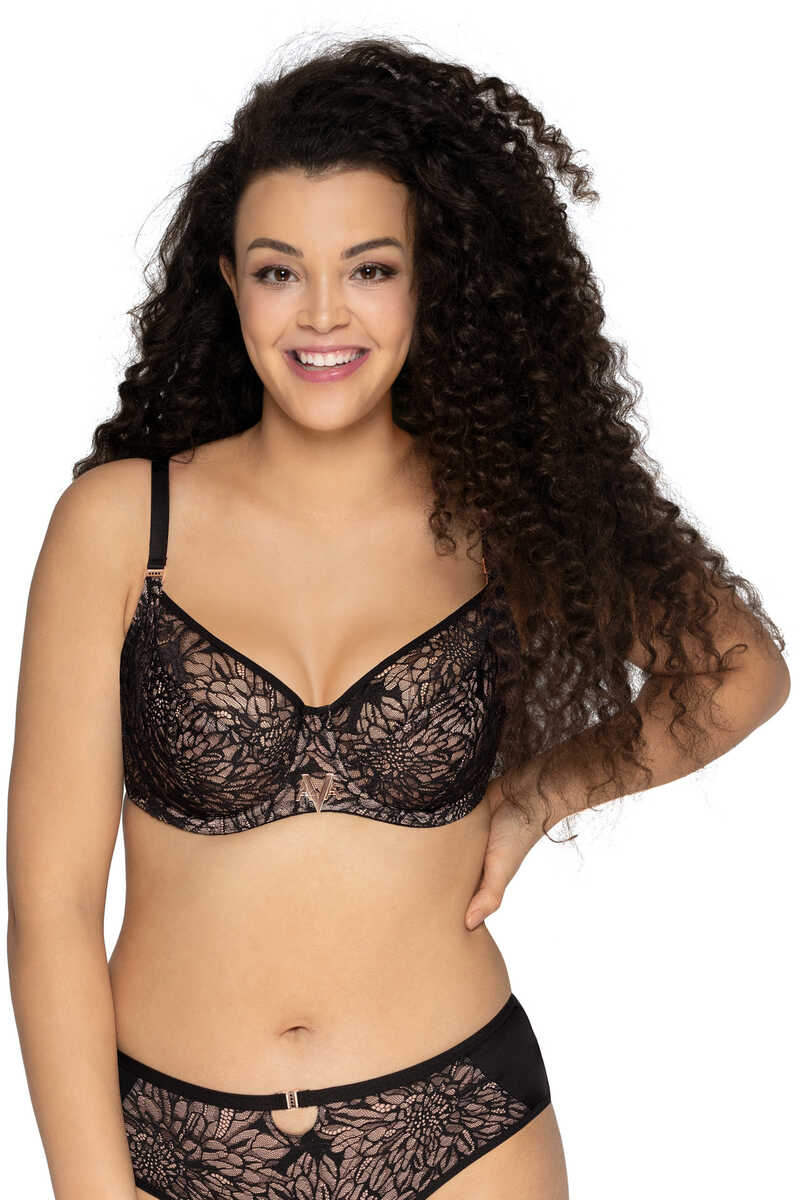- Чорна окантовка на чашках ефектно підкреслює вигини декольте.