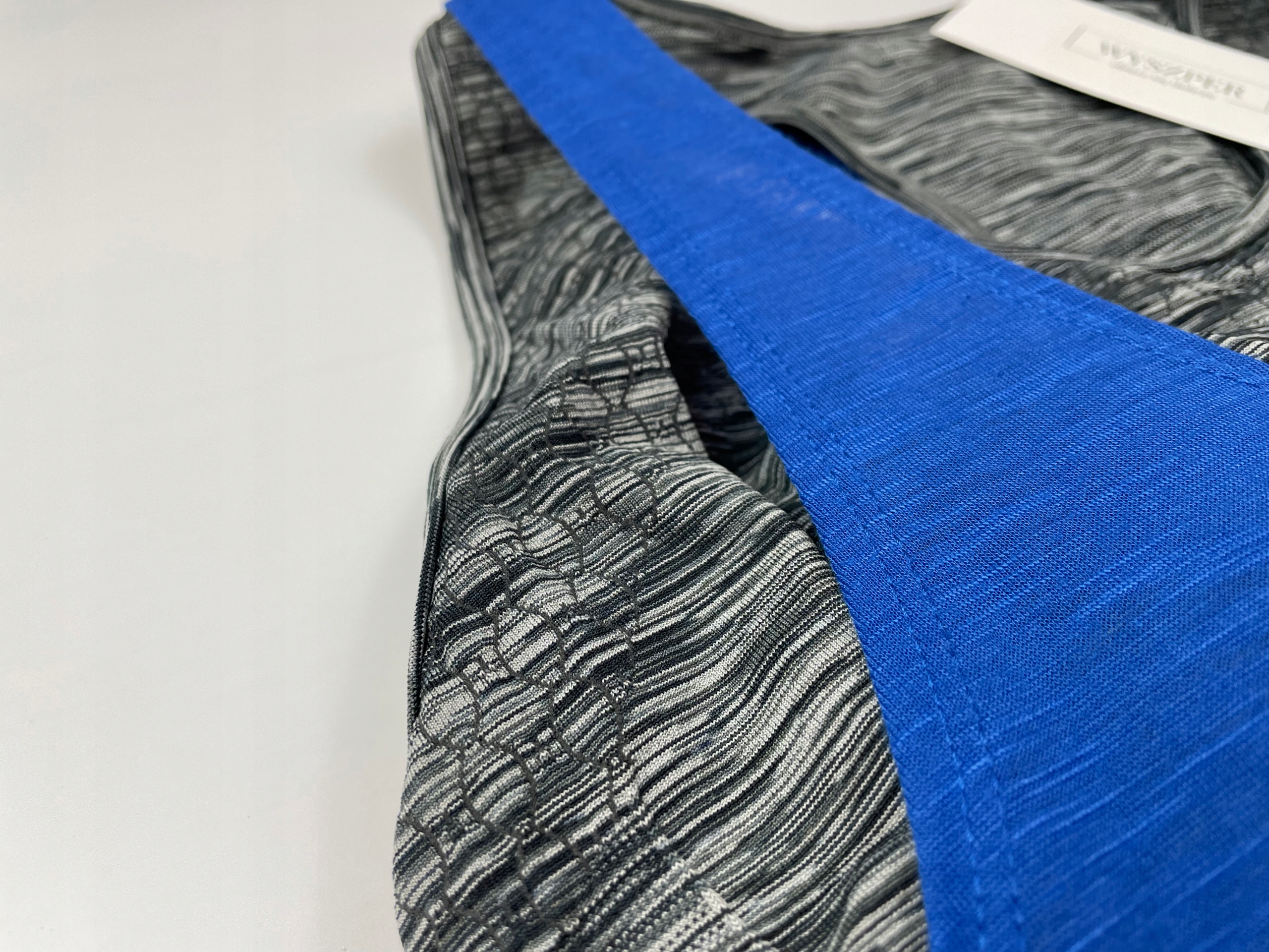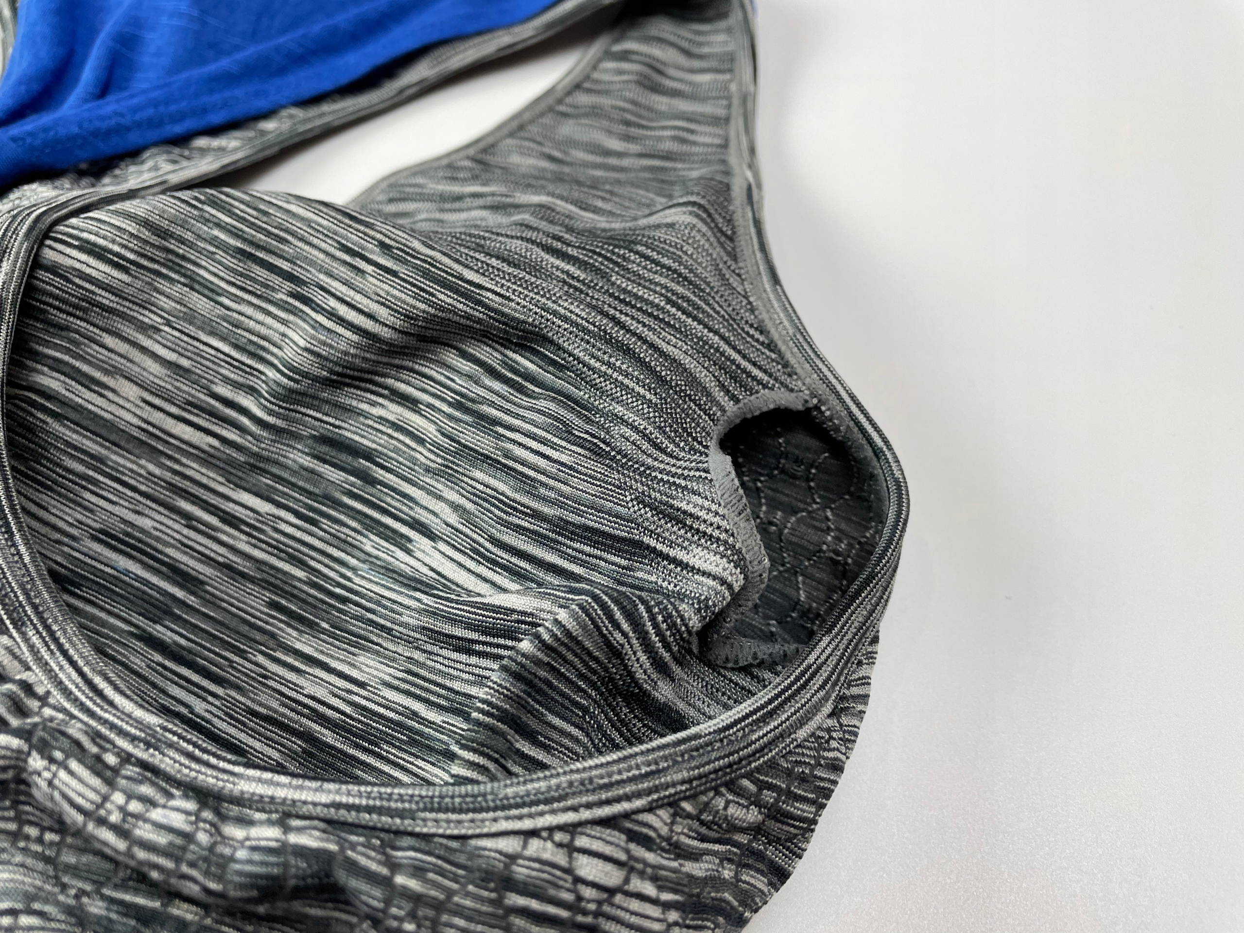 - Жіноча спортивна t -сорочка 2in1. Він складається з сірого бюстгальтера з жорсткими чашками та пришитною сорочкою боксера в синьому кольорі. Сорочка вільна і сильно вирізана під лінією пахви. Бюстгальтер має гнучку гумку, розтягується. США відповідатиме розміру XL/XXL. Ми радимо ознайомитись із розмірами нижче. Вона прийшла до нас прямо з США