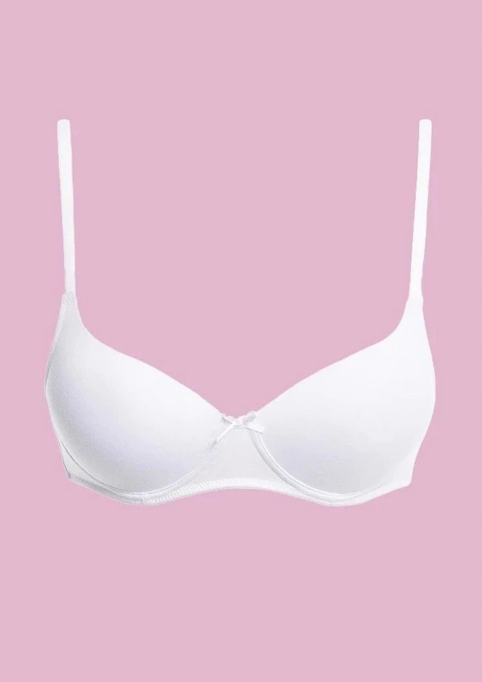 Комфортний бюстгальтер для дівчинки з приємної мікрофібри. Термоформовані чашки (не видно під одягом), злегка посилені спонжем пуш-ап, без кісточок, регульовані бретелі. Триступенева застібка на один гачок.