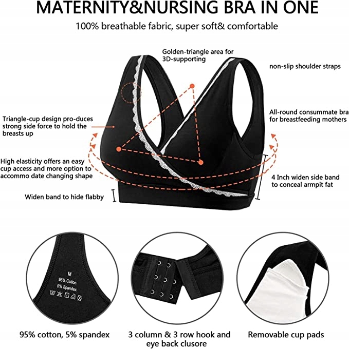 Завдяки високому вмісту еластичності та подовженню бюстгальтер дуже зручний у носінні, як корсет, але все ще забезпечує хорошу підтримку та форму для щоденного використання та ніде не врізається. Тонку підкладку можна легко зняти та знову вставити. Розширення лівого та правого боків і подовження подолу зроблять його ідеальним і зручним під час вагітності, годування груддю або в повсякденному житті.