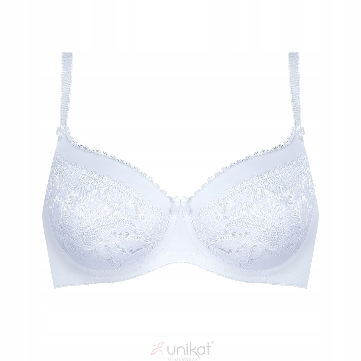 Чудовий бюстгальтер з підкладкою. Гладкі чашечки частково вкриті квітковим мереживом. На перемичці та початку лямок є чудові банти. Вирізані чашечки гарно підкреслюють бюст. Бічні кісточки для кращої посадки. Регульовані лямки, які не знімаються.