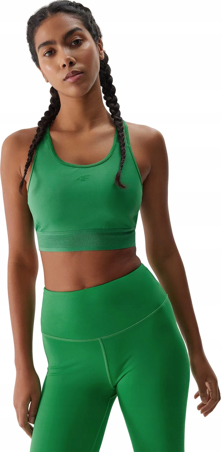 Жіночий спортивний бюстгальтер 4FWSS24TFTSF705 4F — ідеальний вибір для активних жінок. Виготовлений з високоякісних матеріалів, поліестеру та еластану, забезпечує комфорт і гнучкість. Завдяки технології 4F Dry бюстгальтер швидко висихає та ефективно відводить вологу, зберігаючи шкіру сухою навіть під час інтенсивного бігу. Гумка під бюстом з логотипом бренду гарантує ідеальну посадку. Бюстгальтер марки 4F забезпечує комфорт і підтримку під час тренувань.