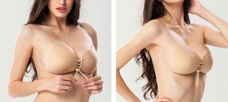 Бюстгальтер з дихаючої тканини. Всередині вистелена спеціальним, самоклеючим гелем. Після надягання чашечки та затягування бюстгальтера зав’язками бюст підтягується, підтягується та оголюється.