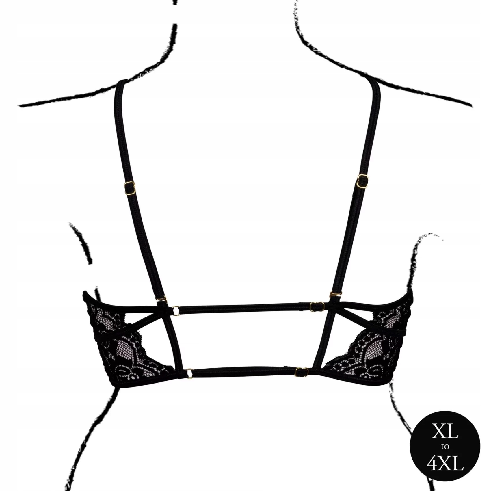 Бюстгальтер з відкритою чашкою і трикутником, мереживом і регульованими повзунками 2XL/4XL, чорний