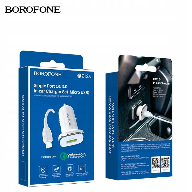BZ12A Автомобільний зарядний пристрій QC3.0 з одним портом і мікро-USB для довготривалої потужності