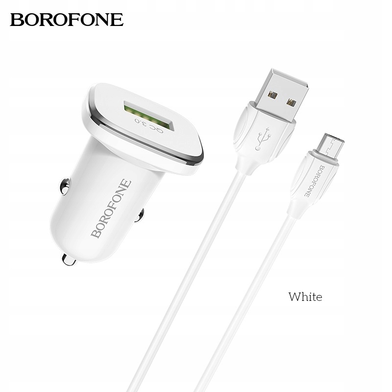 BOROFONE BZ12A Lasting power - це автомобільний зарядний пристрій з одним портом USB, вихідна потужність від 1,5 А до 3 А, в стандарті Quick Charge 3.0 / QC3.0. У комплект також входить кабель micro USB 2A довжиною 1M. Мінімалістичний дизайн, широкий діапазон напруг і широкі можливості заряджання різноманітних мобільних пристроїв – його головні та незаперечні переваги.